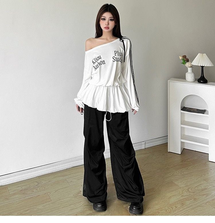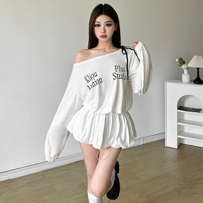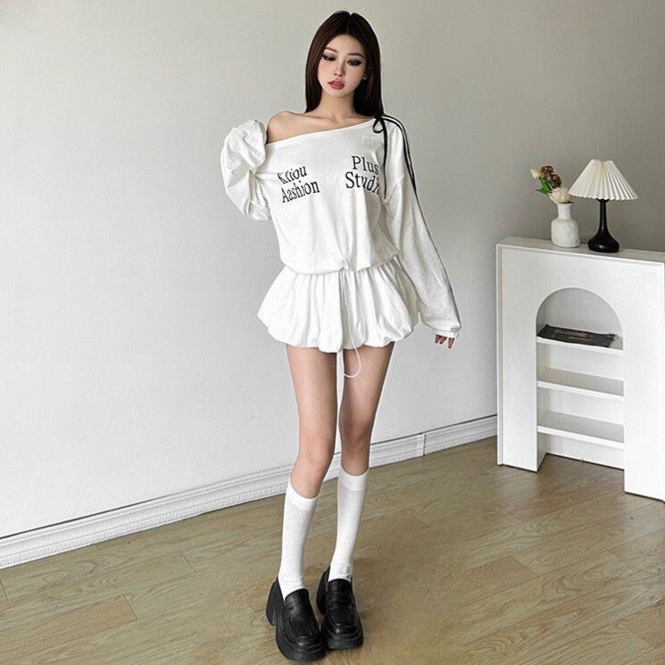 オフショルダー ワンピース 長袖 スウェット ミニワンピ ギャル 秋冬 韓国風 セクシー カジュアル