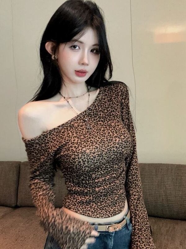 豹柄 トップス レディース 長袖 Tシャツ セクシー タイト 韓国風 ギャル 量産型 痩せ見え インナー 秋冬 春 秋服 冬服