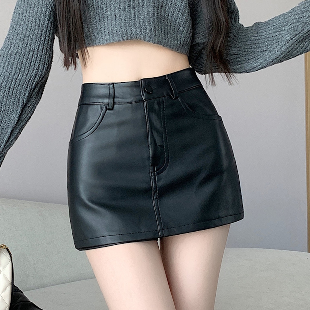 大人可愛いを演出できる PUレザーミニスカート が登場。