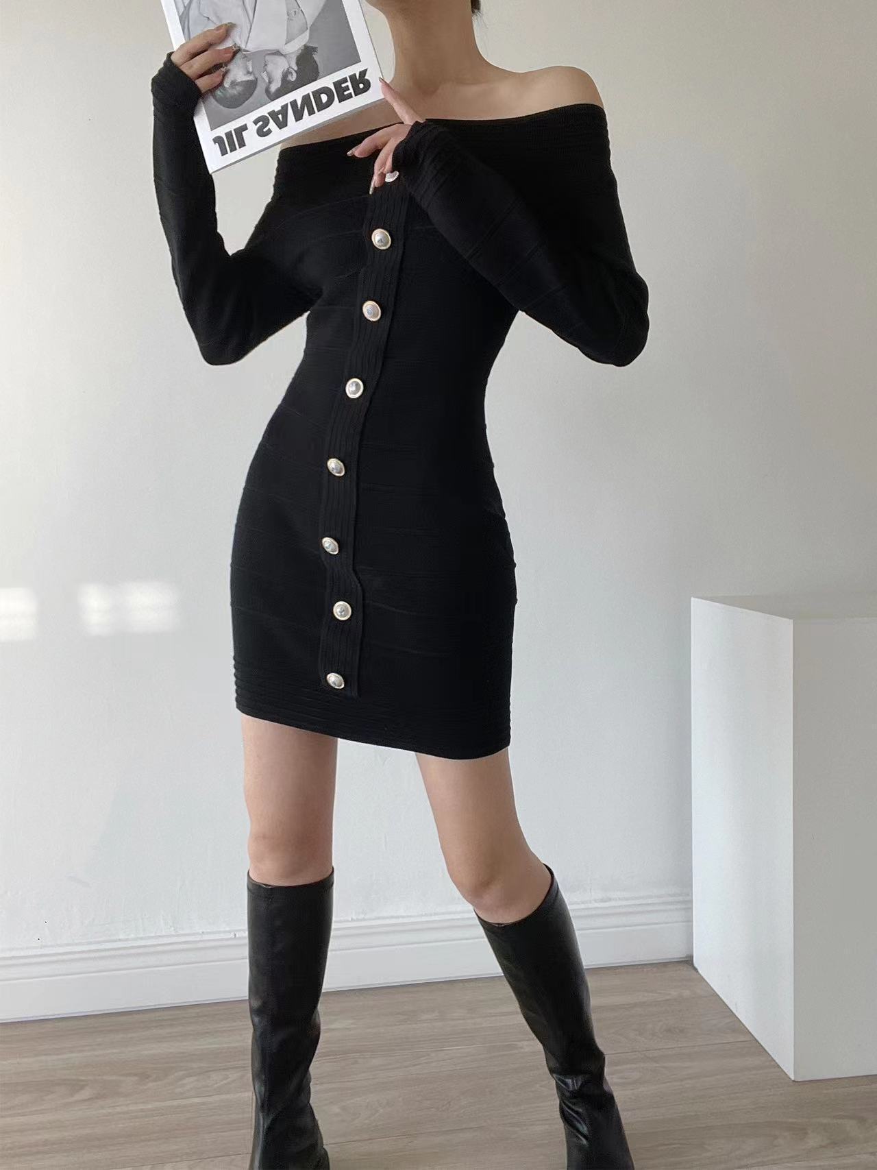 上品さと色気を両立した「フレンチエレガンス」なオフショルダーニットワンピース。