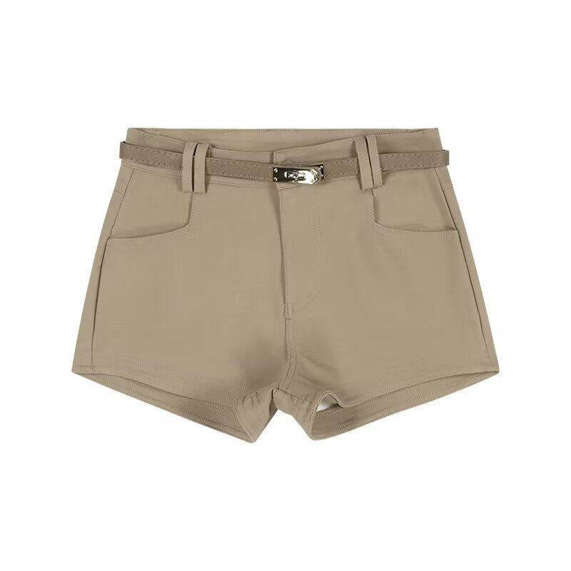 ハイウエストショートパンツ ベルト付き|脚長効果抜群 美脚Aラインショーツ|秋新作 カジュアルボトム ベージュ