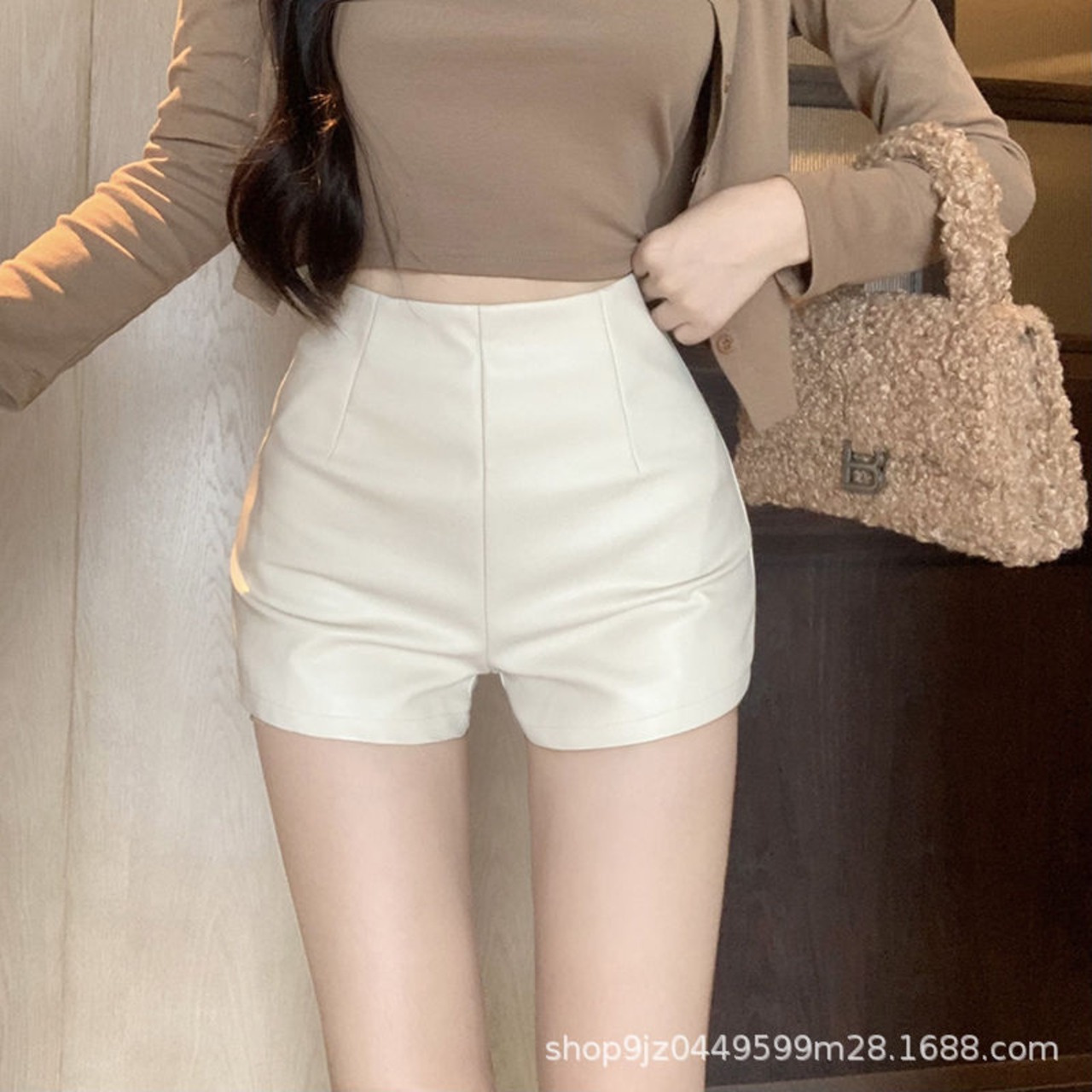 艶のあるフェイクレザー素材で、スタイルアップを叶えるショートパンツ。