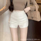 PUレザーショートパンツ レディース ハイウエスト Aライン フェイクレザー 美脚ショートボトム タイトショートパンツ 秋冬 韓国風 ストリート コーデ 黒 ブラック