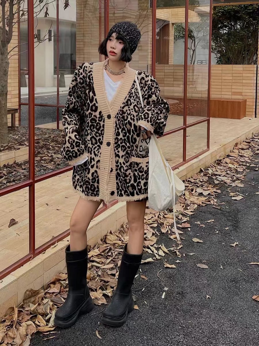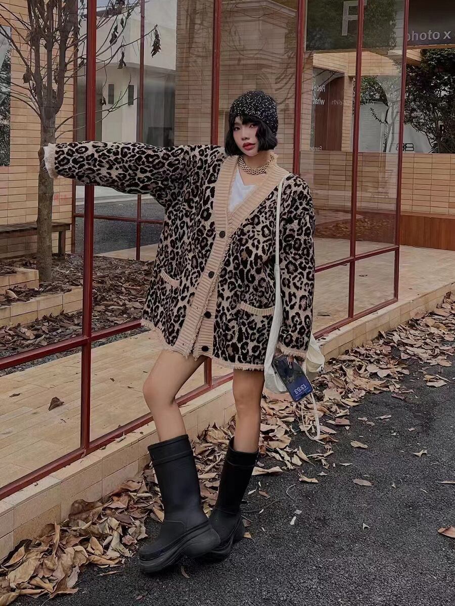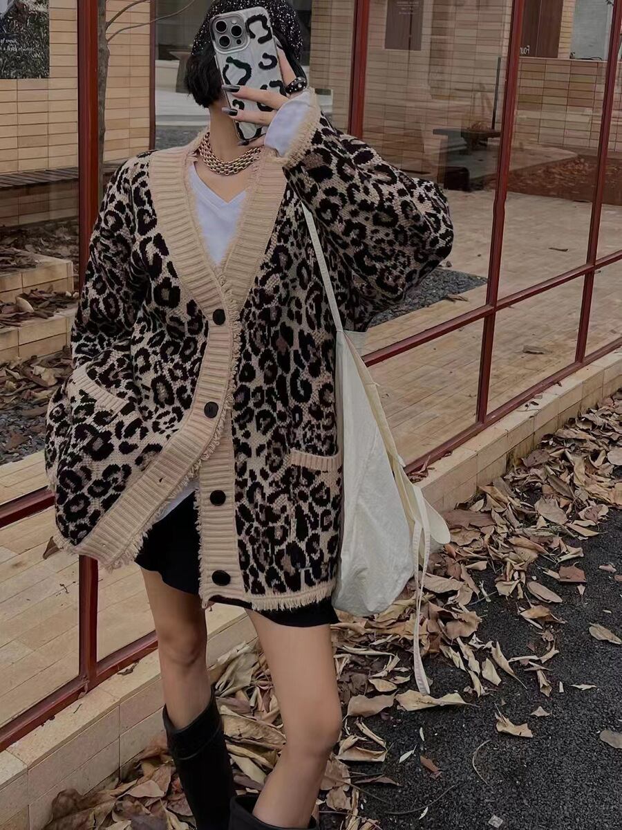 【レオパ柄セーター】秋冬新作 海外ガール風 ゆるダボ厚手ニット 甘辛MIXで冬のモテトップス