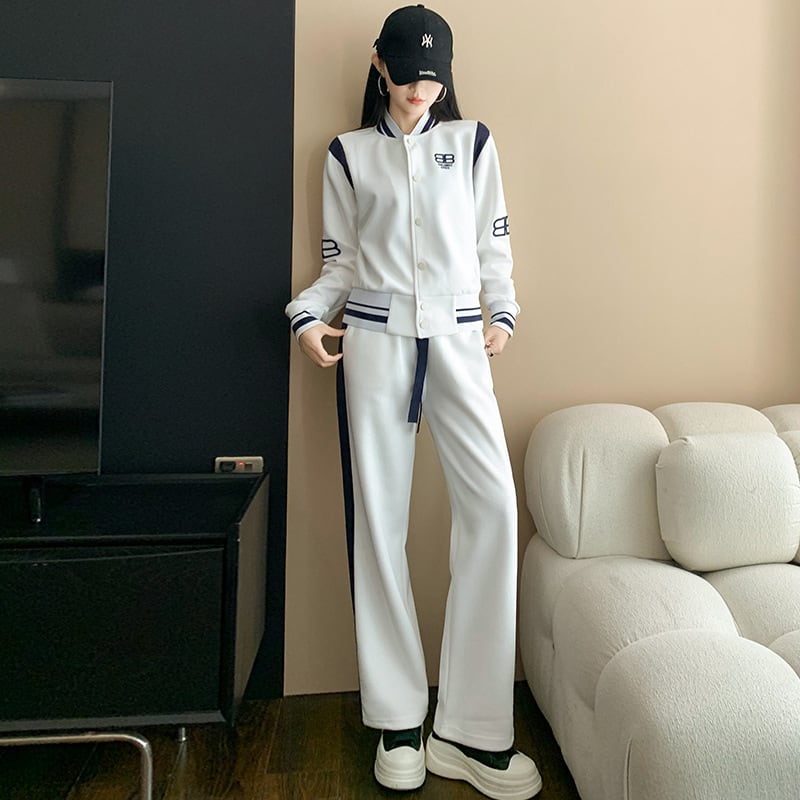 パンツは脚長効果のあるストレートラインで、動きやすくリラックス感も抜群。