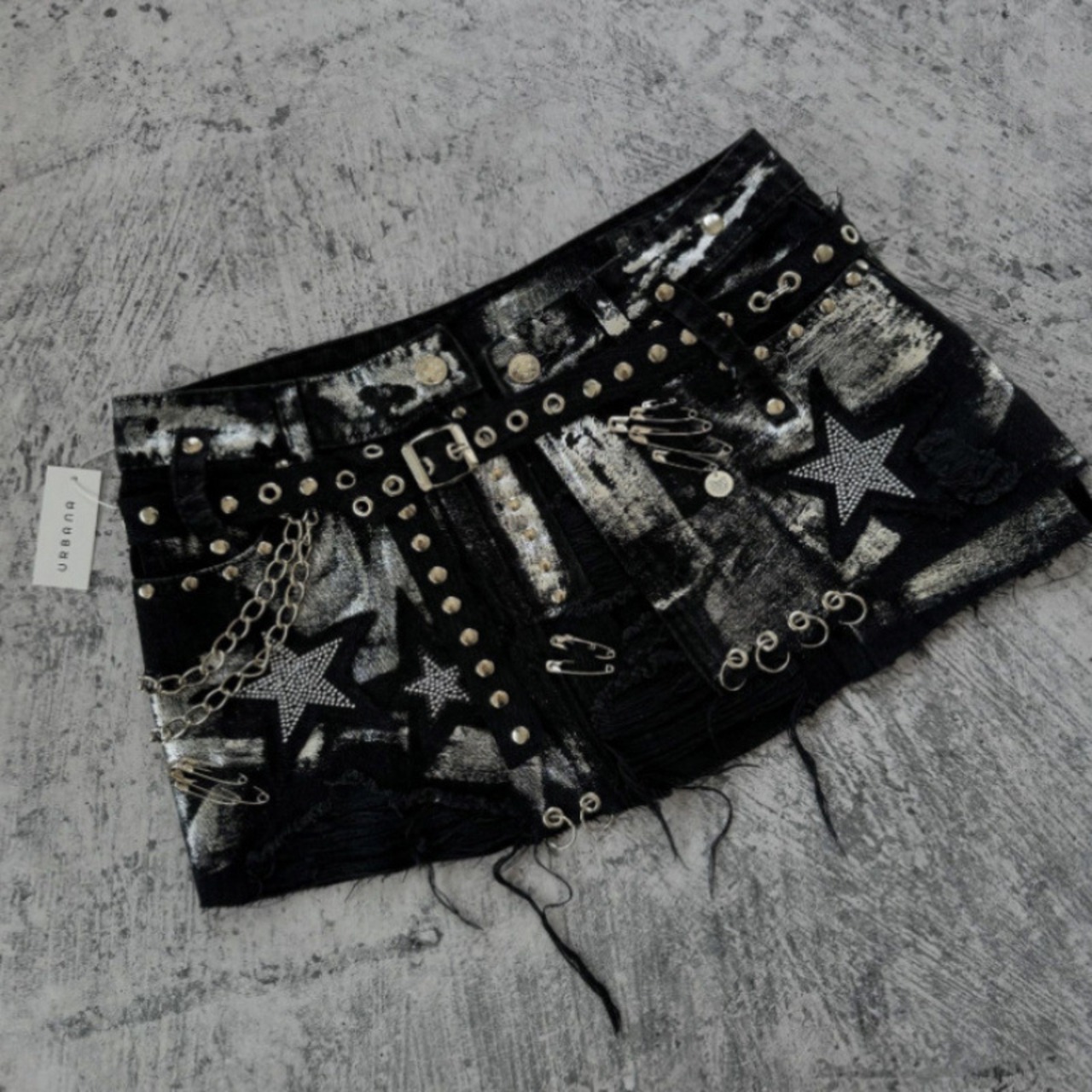 #Y2K #デニムスカート #ブラックデニム #ストリートコーデ #ギャルファッション #モードカジュアル #ハイウエスト #韓国ファッション #garly