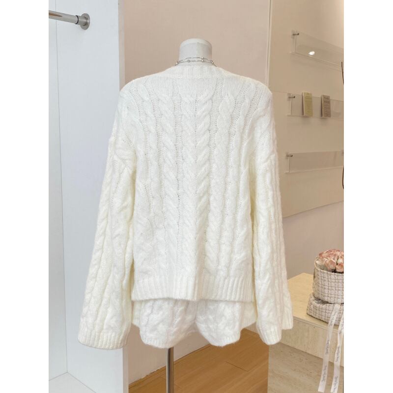 クーポン配布中!実質送料無料になる800円OFFクーポン!決済前にクーポンコード:XMAS800を入力してお得にGetしてね!ふんわり柔らかな質感が魅力のホワイトニットセットアップ。