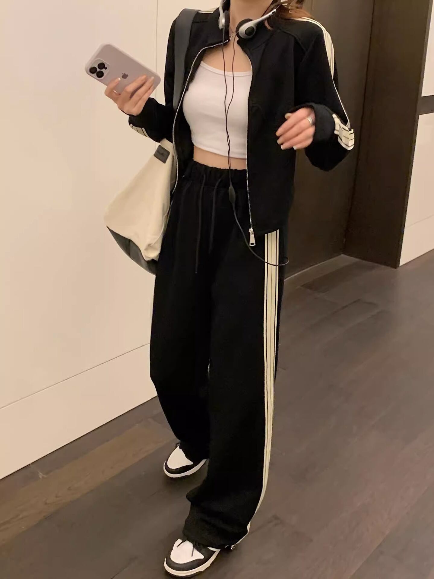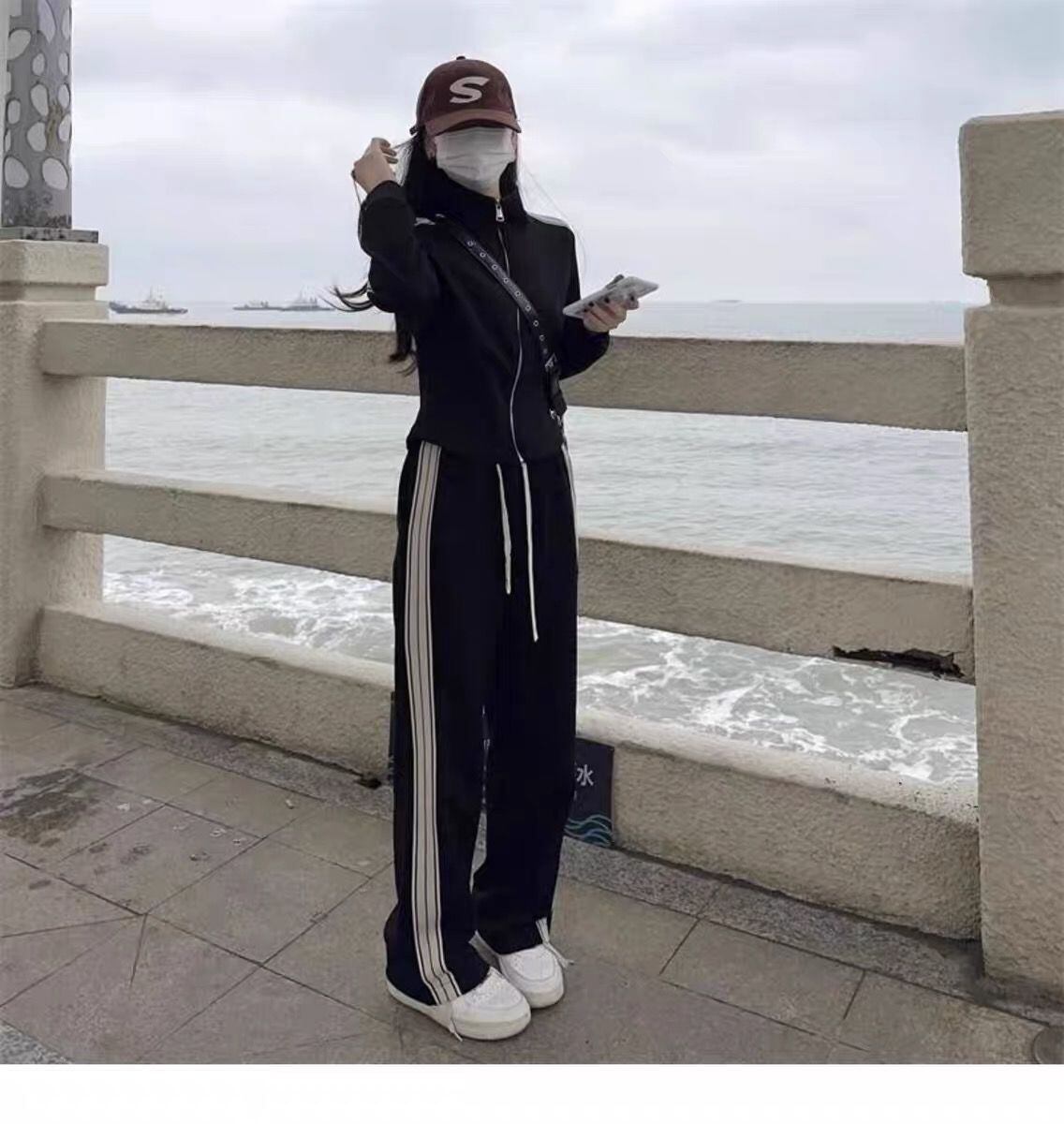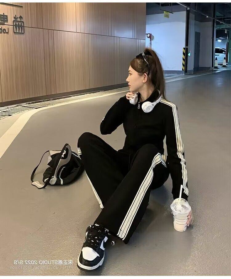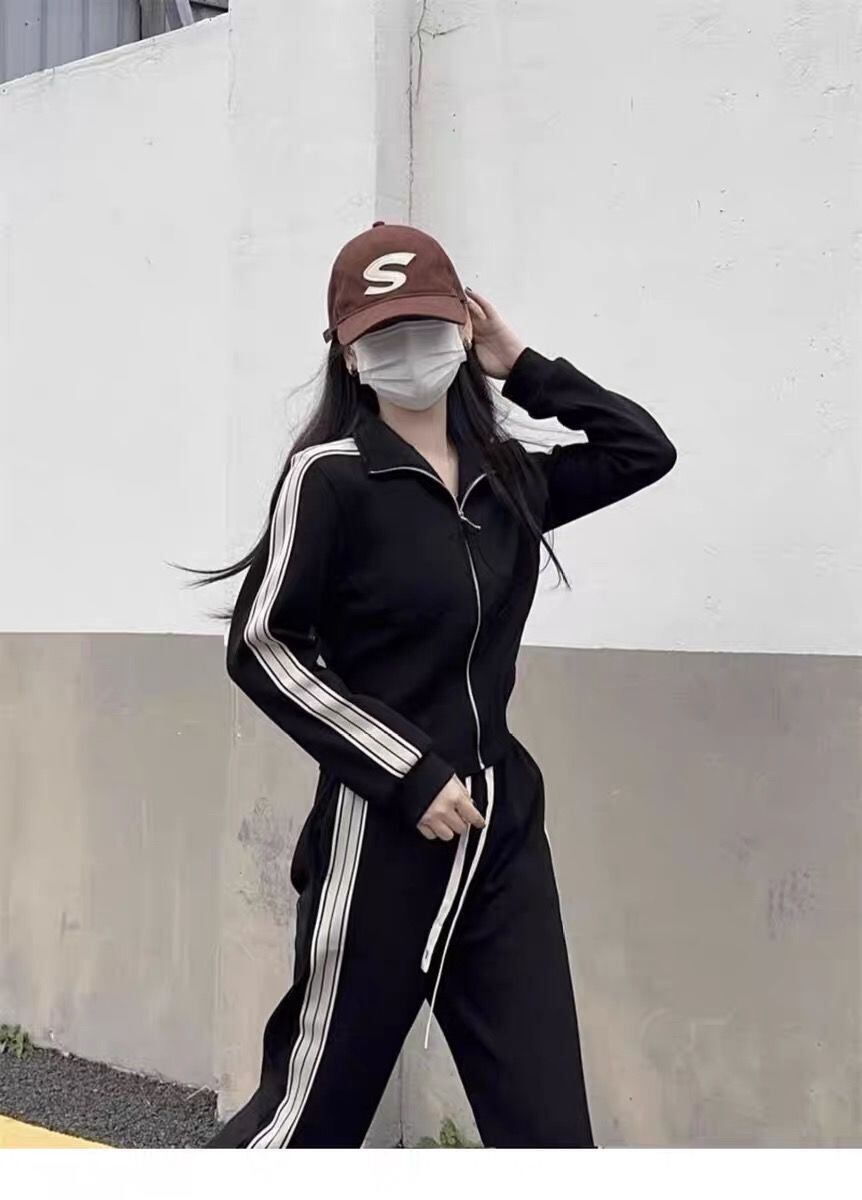 クーポン配布中!実質送料無料になる800円OFFクーポン!決済前にクーポンコード:XMAS800を入力してお得にGetしてね!春秋の軽やかな季節にぴったりの、韓国風スポーティーセットアップ。