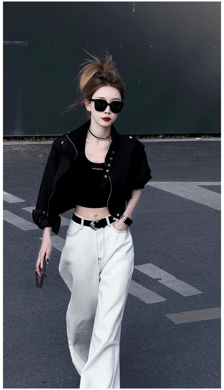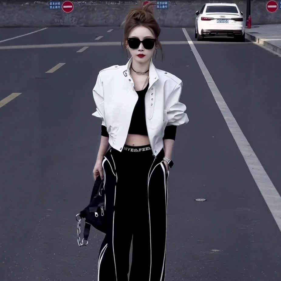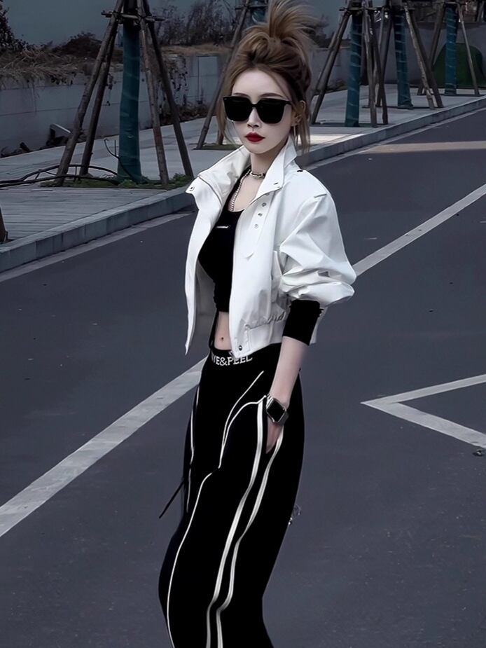 【ホワイト】ショート丈 ジャケット レディース 秋冬 2025新作 シンプル おしゃれ モード風 ライトアウター ホワイト ブラック 小柄さん向け ジップアップ ブルゾン