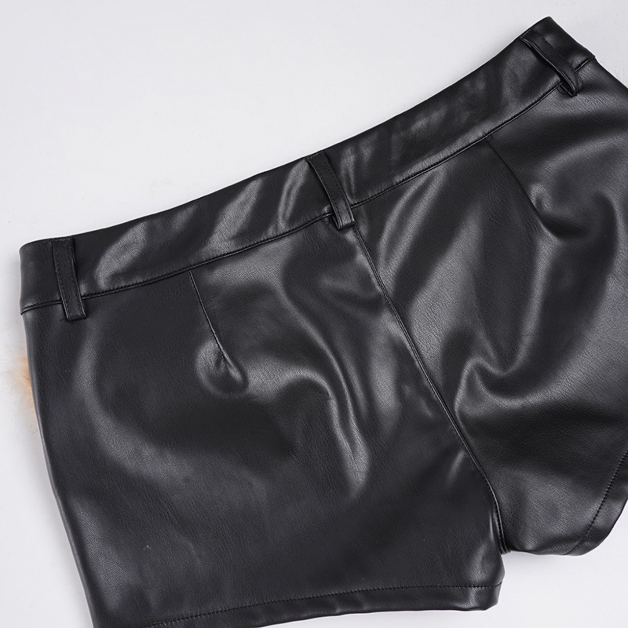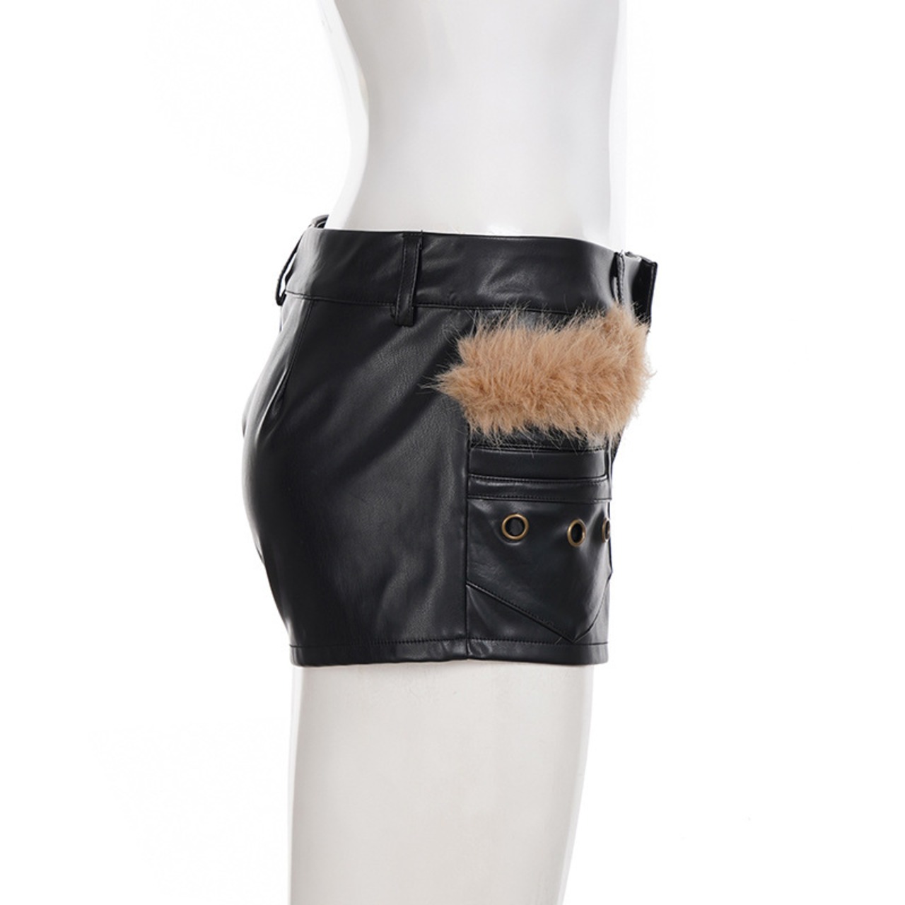【トレンド最前線】フェイクファー×レザーミックス ショートパンツ レディース 冬新作 ストリート風 ローウエスト ショートボトム