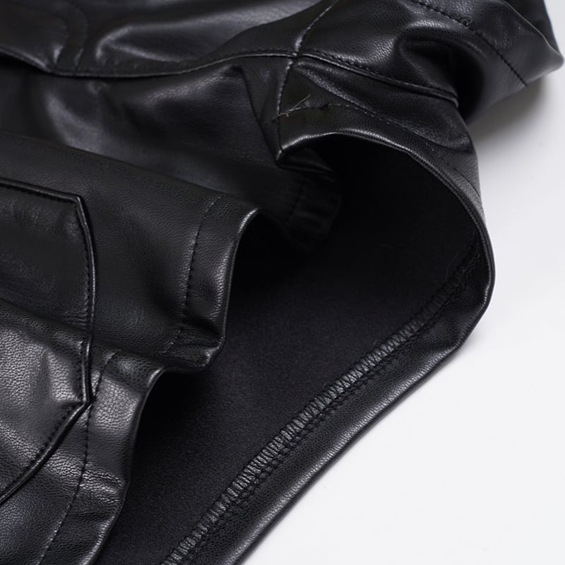 フェイクレザー×フェイクファーの異素材切り替えデザイン