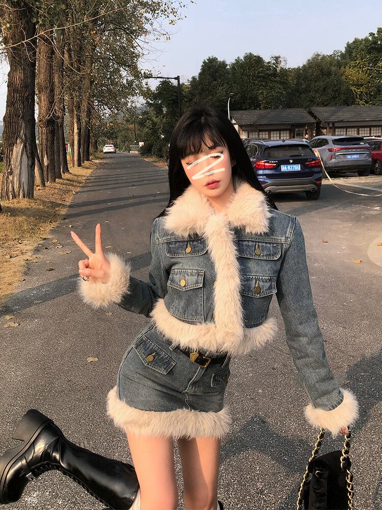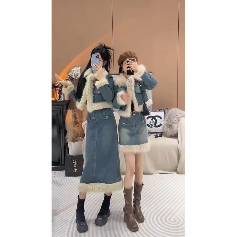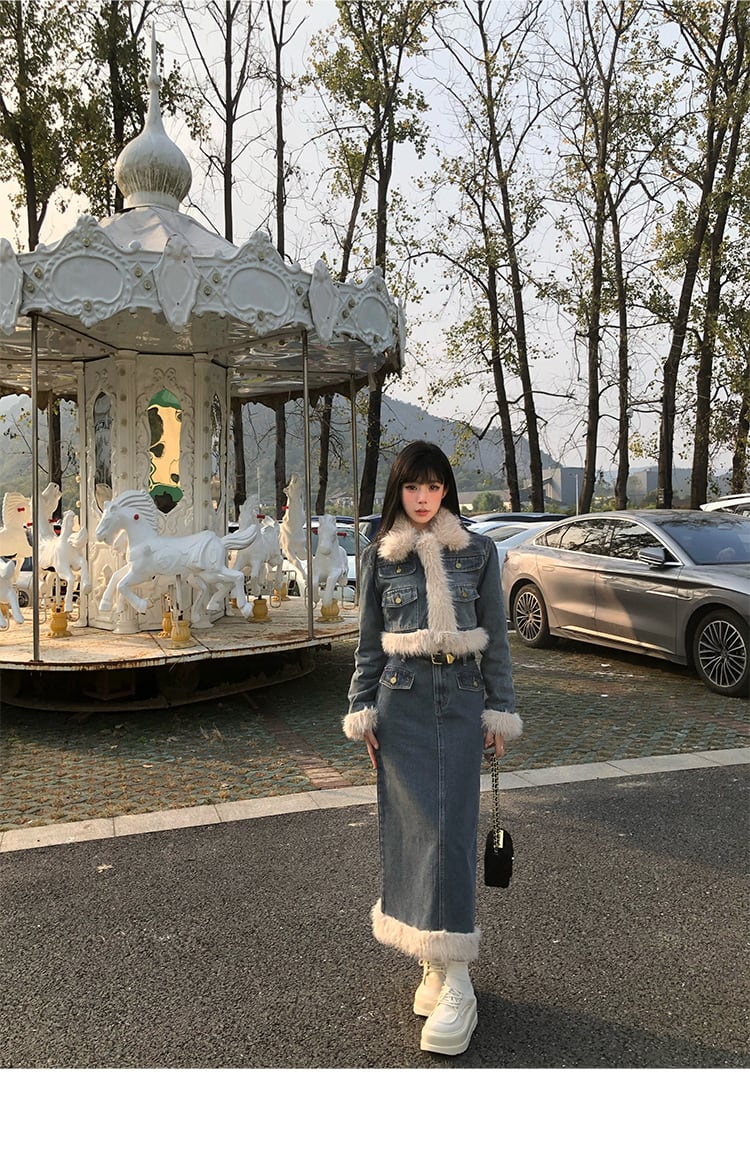 デニムセットアップ ロングスカートVer.|ショートジャケット&ロングスカート 上品見えする大人フェミニンコーデ【秋冬新作】