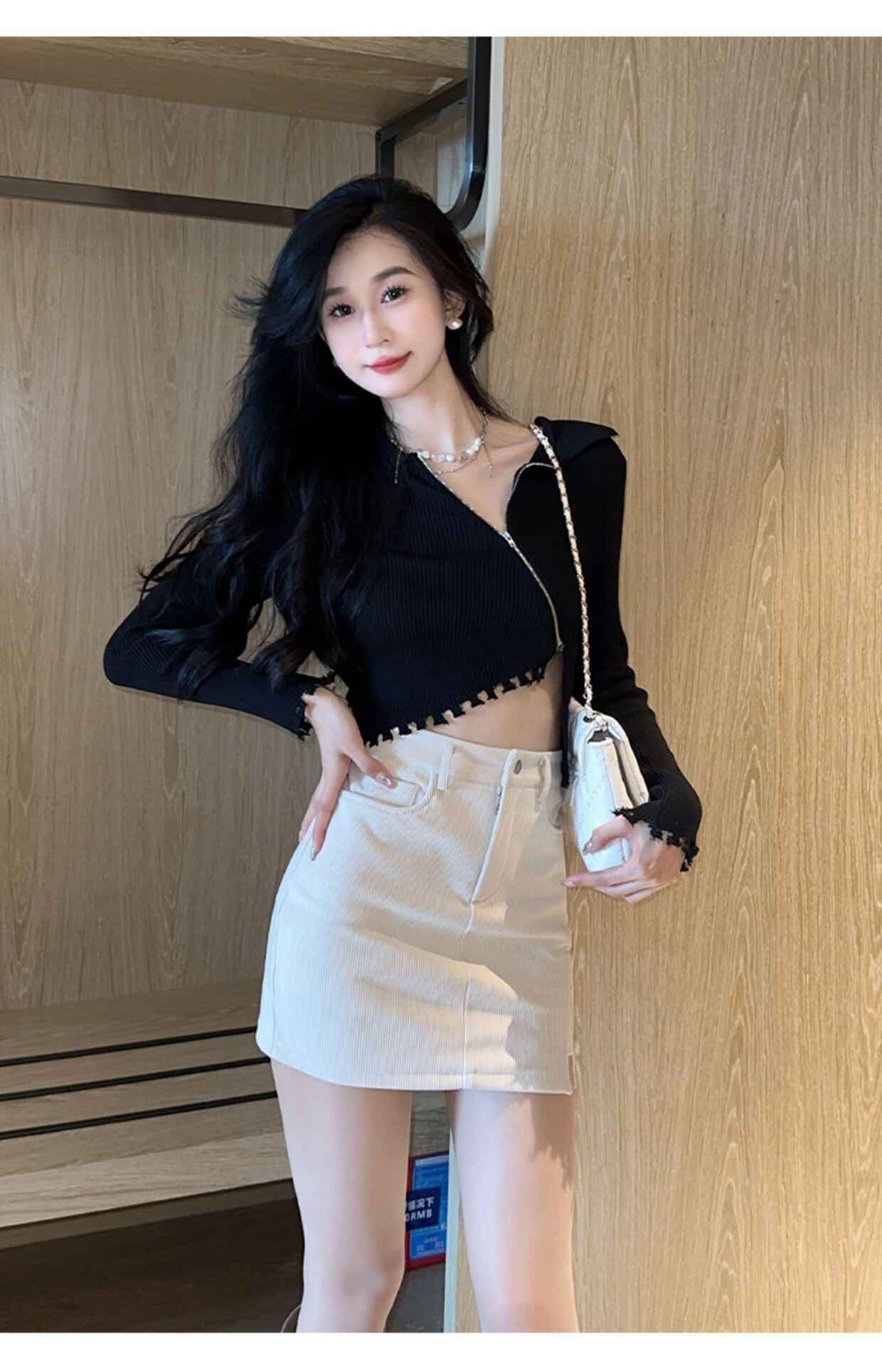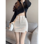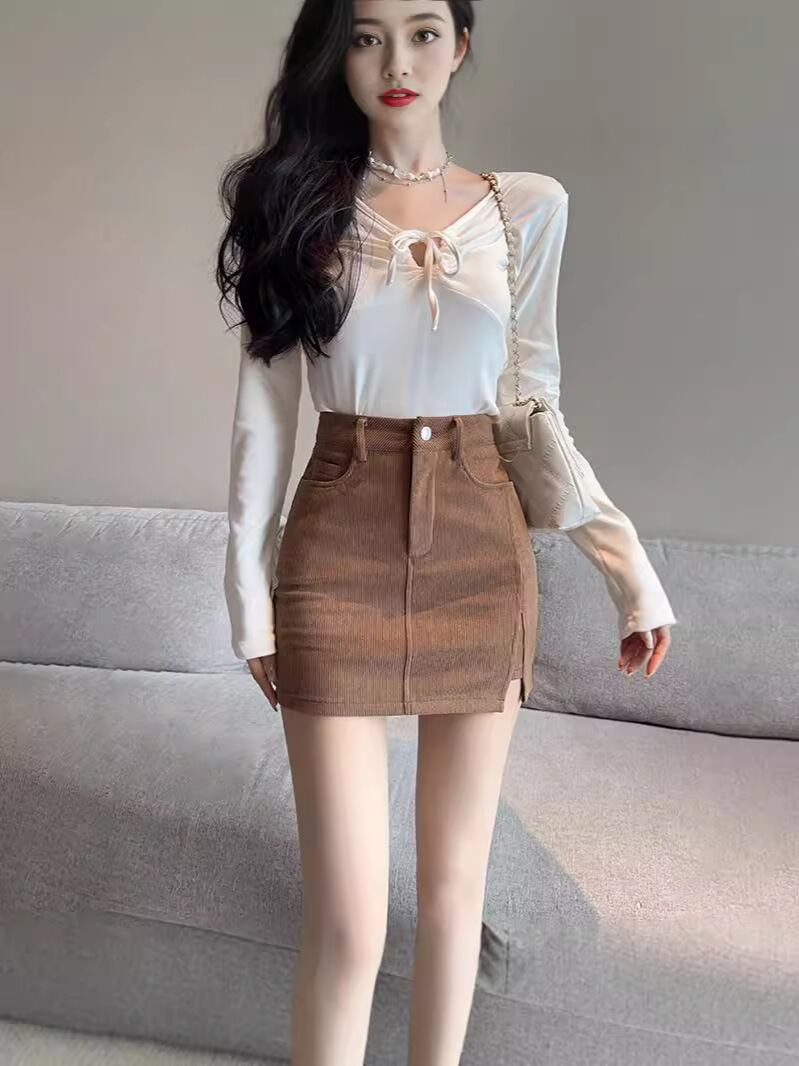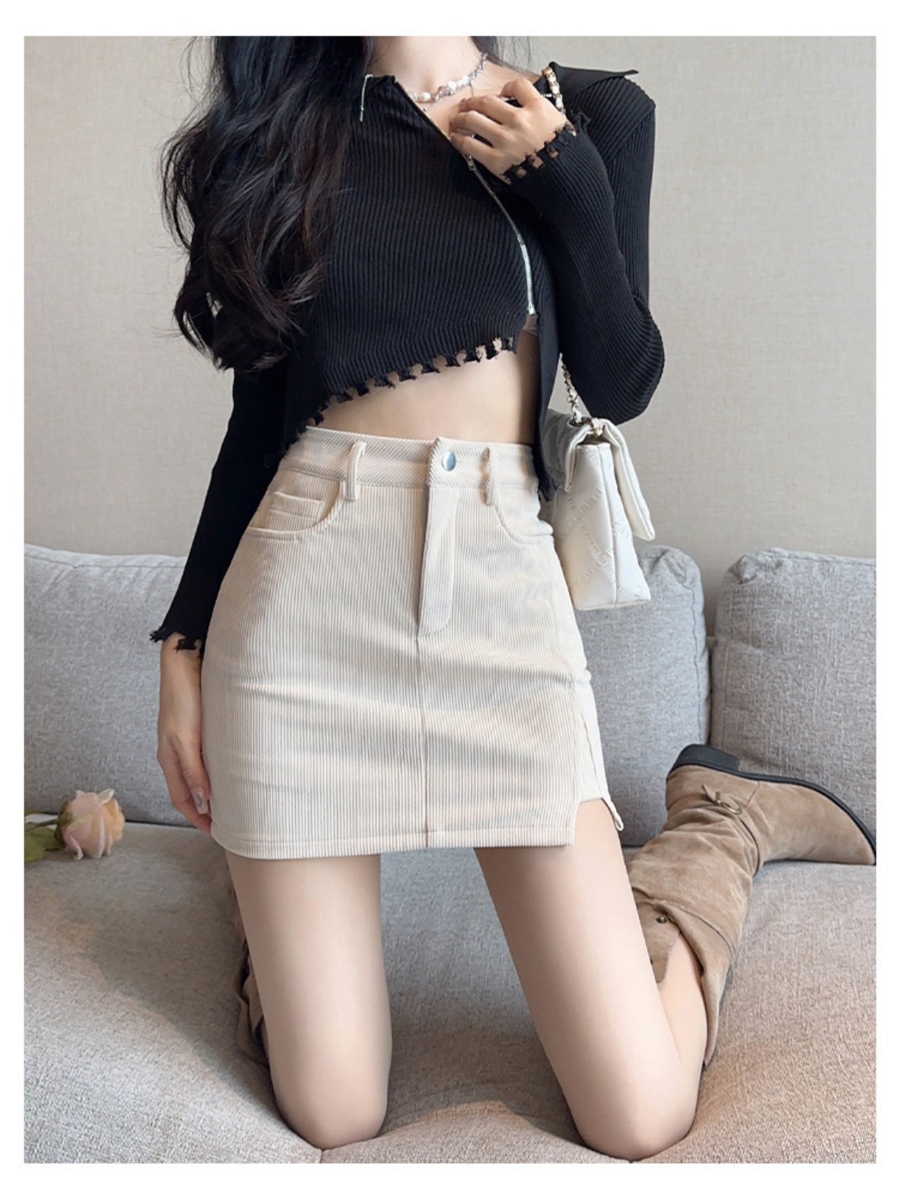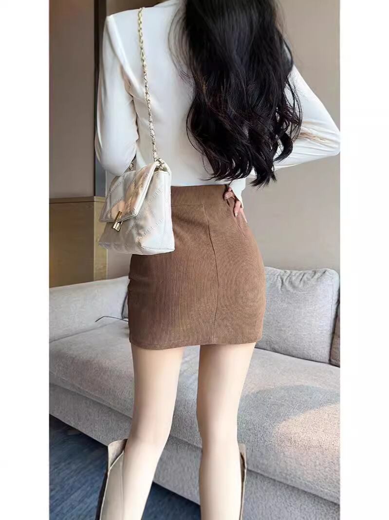 【ブラック】ハイウエスト コーデュロイタイトスカート レディース 冬新作 韓国ファッション スリット入り 美脚見え ミニ丈 台形 一歩スカート XS〜XL