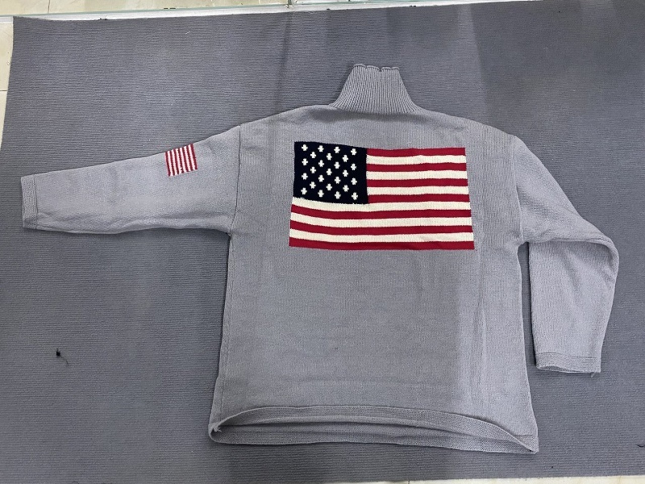 国旗デザインを大胆に編み込んだ存在感のある柄が、