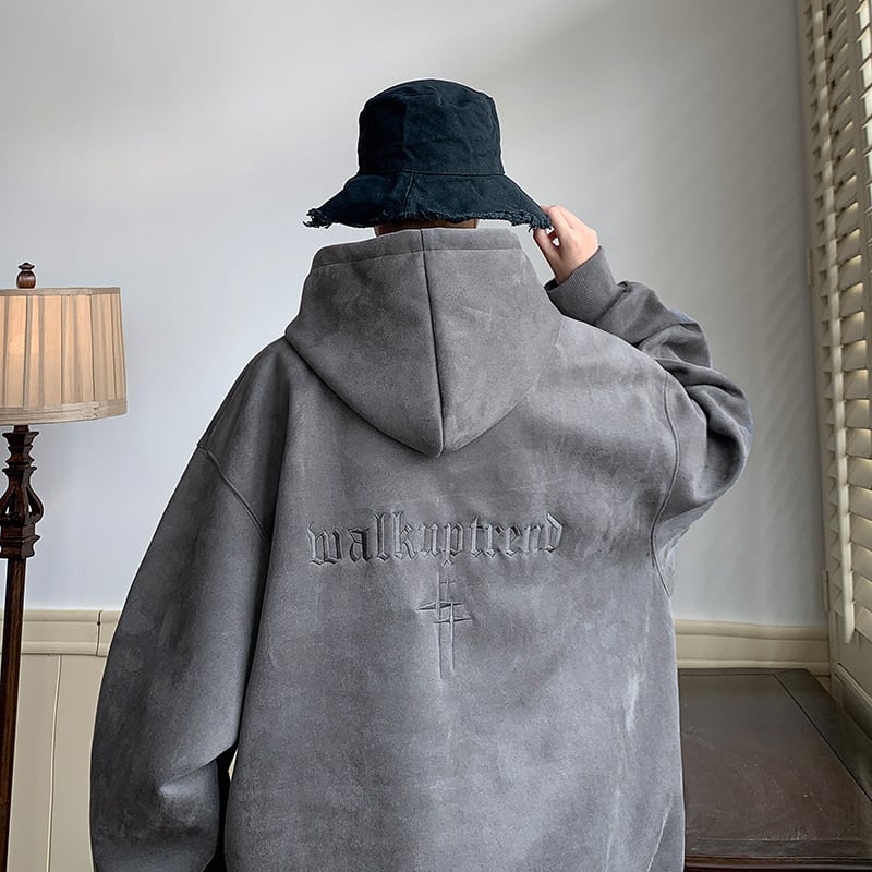 【ブラック】スエード風ヘビーウェイト オーバーサイズパーカー|美式ストリート × 病みカワ強めフーディ