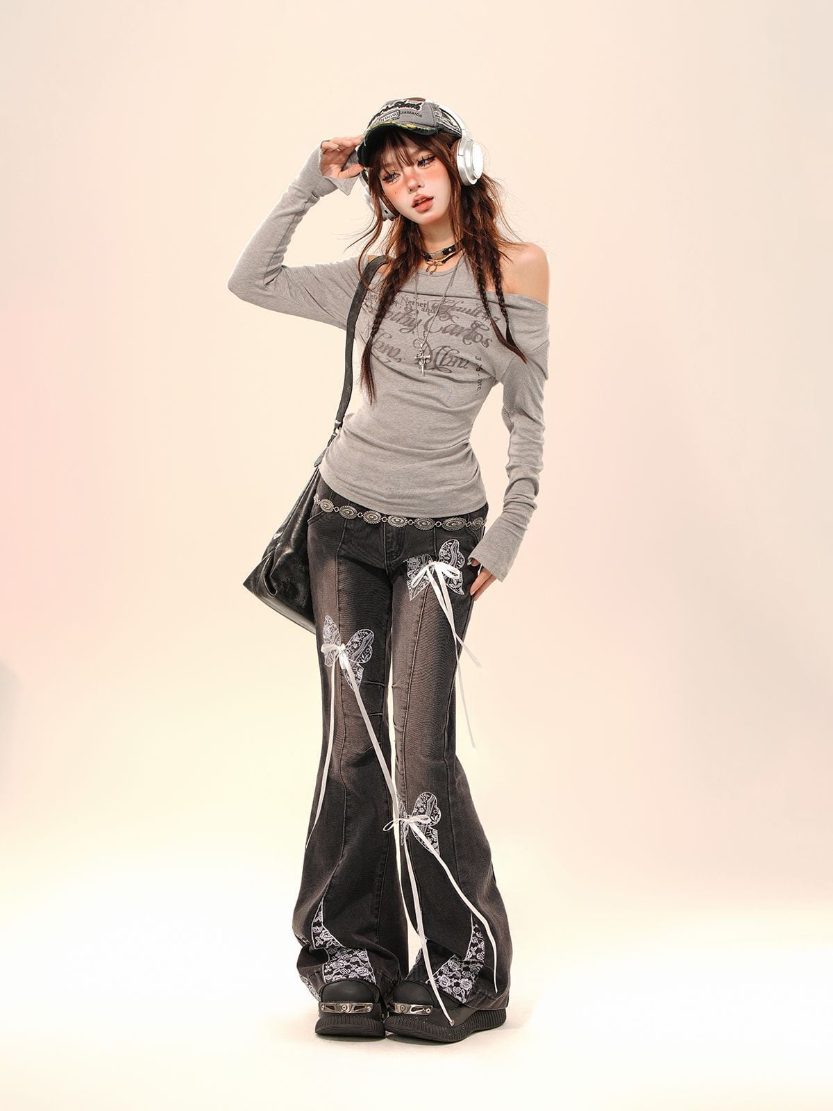一字肩(オフショル風)
