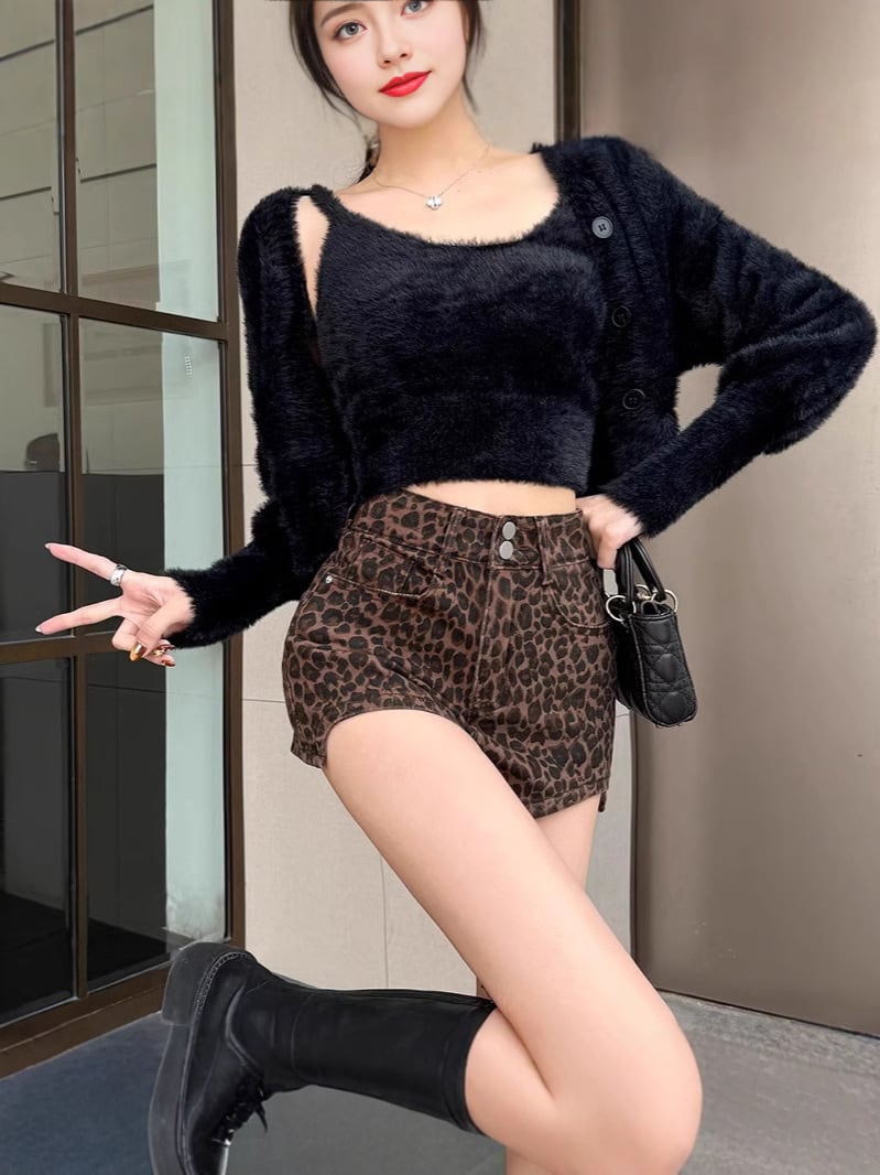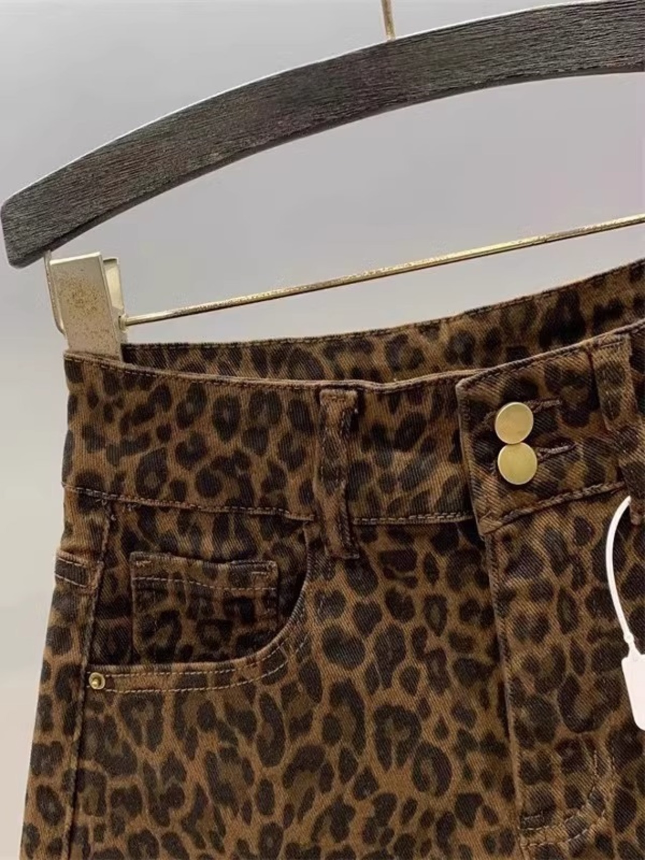 小柄さんにも◎ 美スタイル叶うハイウエスト豹柄デニムショートパンツ| Aラインで脚長見せ・タイトで盛れる美脚ショート
