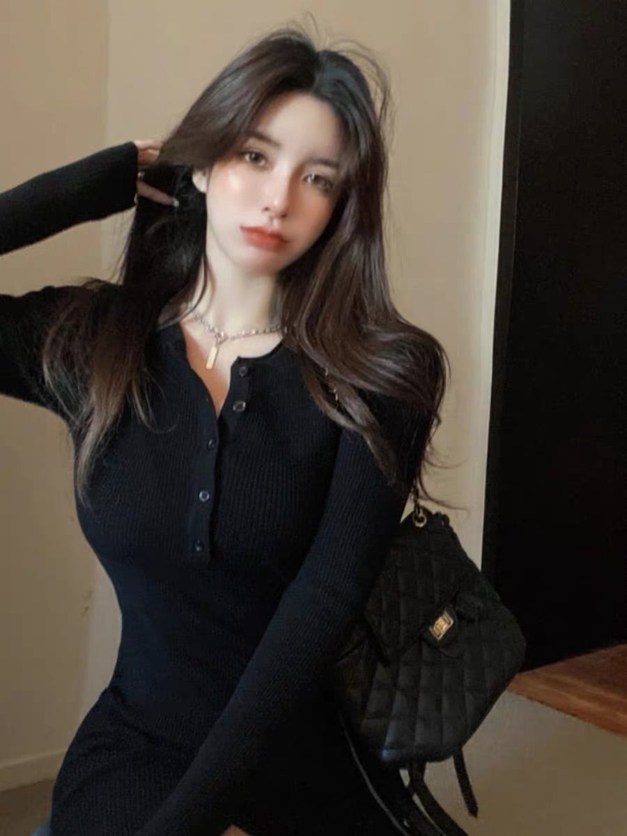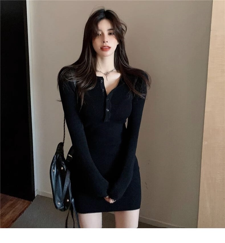 黒 ニットワンピース レディース 秋冬 ロングワンピース 長袖 タイトワンピース ハイウエスト 無地 リブニット スリムフィット ワンピ 大人可愛い 令和ギャル 韓国ファッション