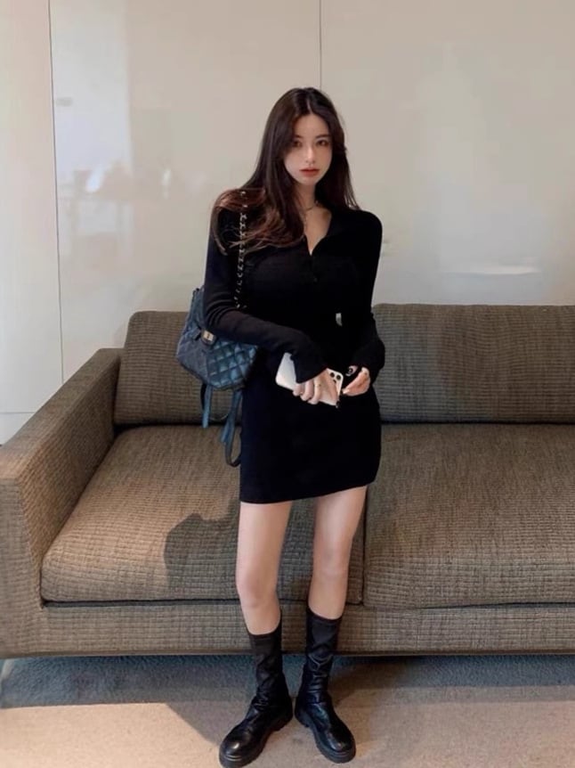 秋冬のおしゃれを格上げする、シンプルなのに美シルエットが際立つブラックのロングニットワンピース。