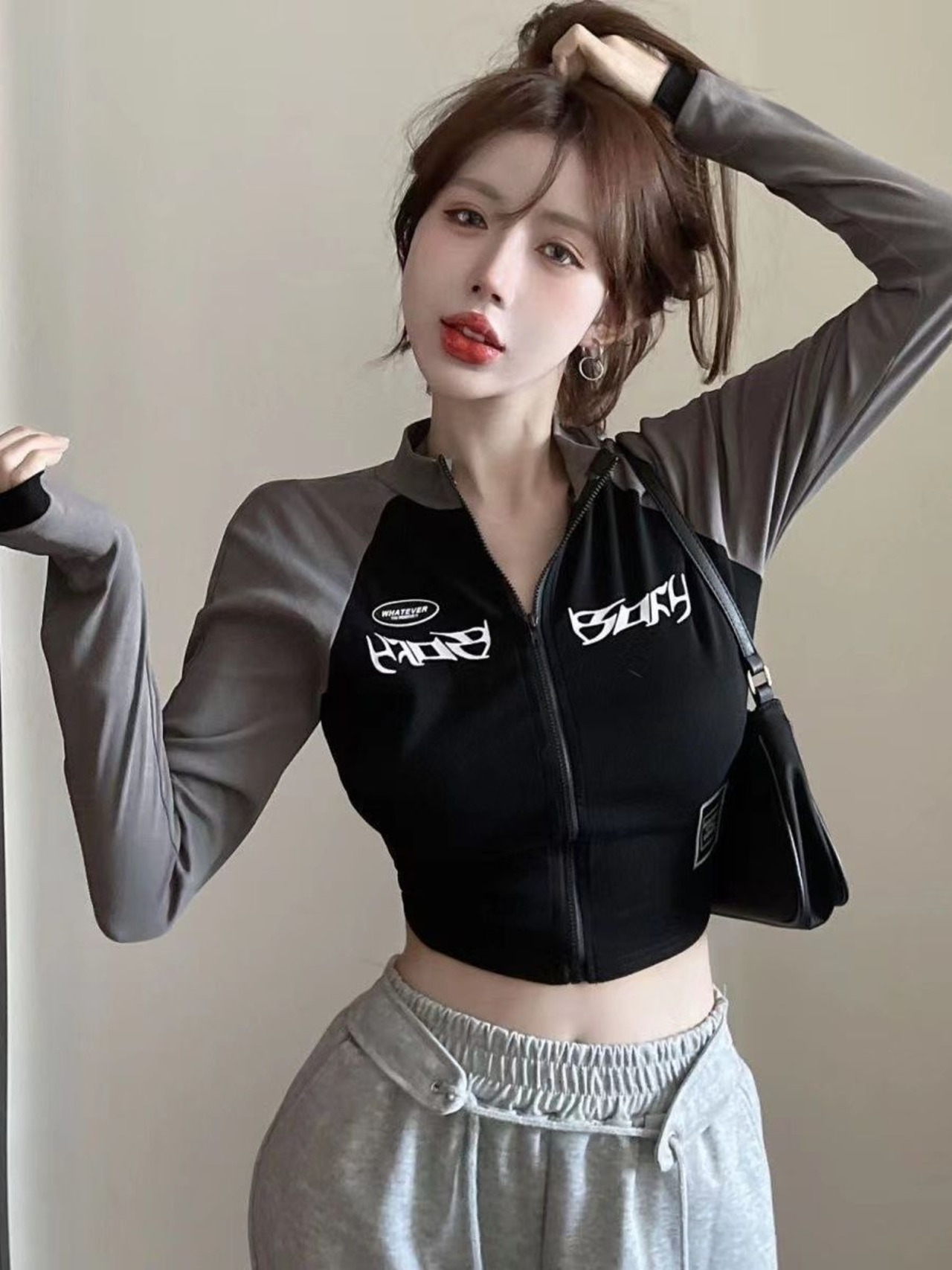 2025年秋の新作、Manggie Kimのショートカーディガンが登場! ボディラインを美しく見せる修身シルエットとジップアップデザインで、スタイルアップ効果抜群。肩部分の配色切り替えがアクセントになり、シンプルながらも存在感のある一枚です。