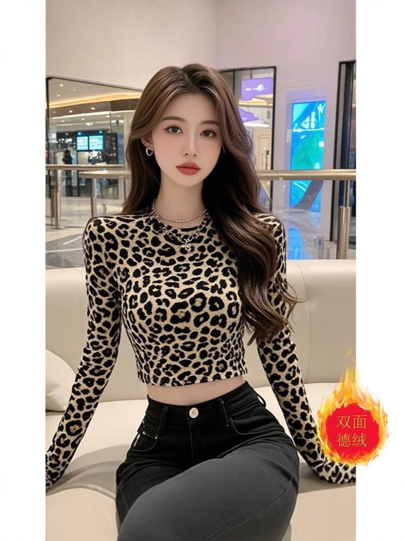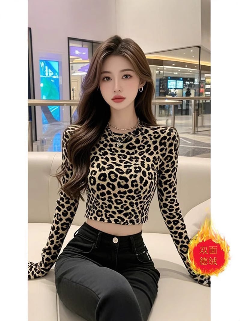 レオパード柄 × 美シルエットデザイン|あったかデロン素材ショート丈トップス|冬映えレイヤードT