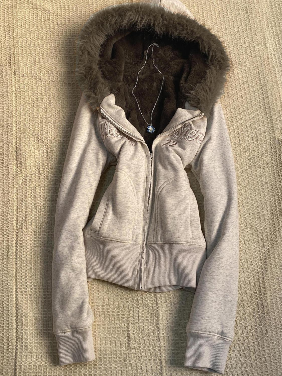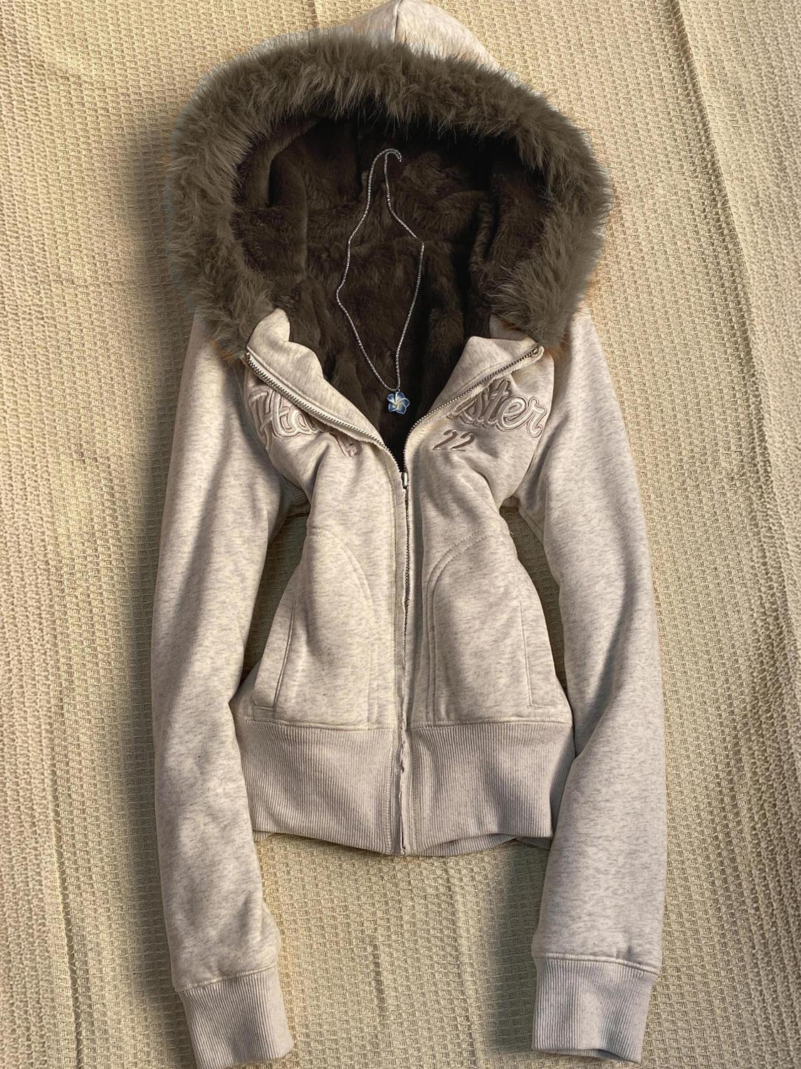 淡いグレーに刺繍ロゴが映える、韓国ストリート感満載のフーディーアウター