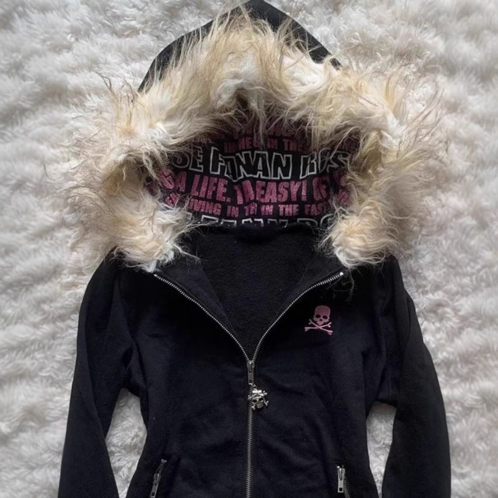 【Y2K地雷系】骷髅刺繍ジップアップパーカー レディース オーバーサイズ フード付き ゴシック 韓国ストリート