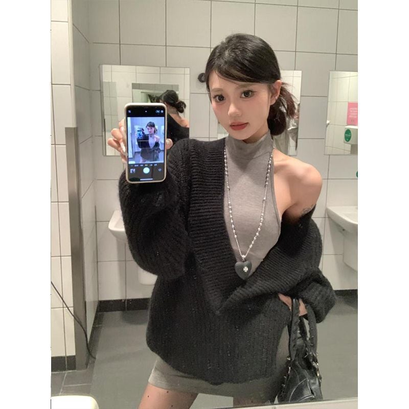 【2025新作】Vネック ニット×ノースリーブワンピース セット|ゆったりトップス&スリムワンピ|大人カジュアル|garly
