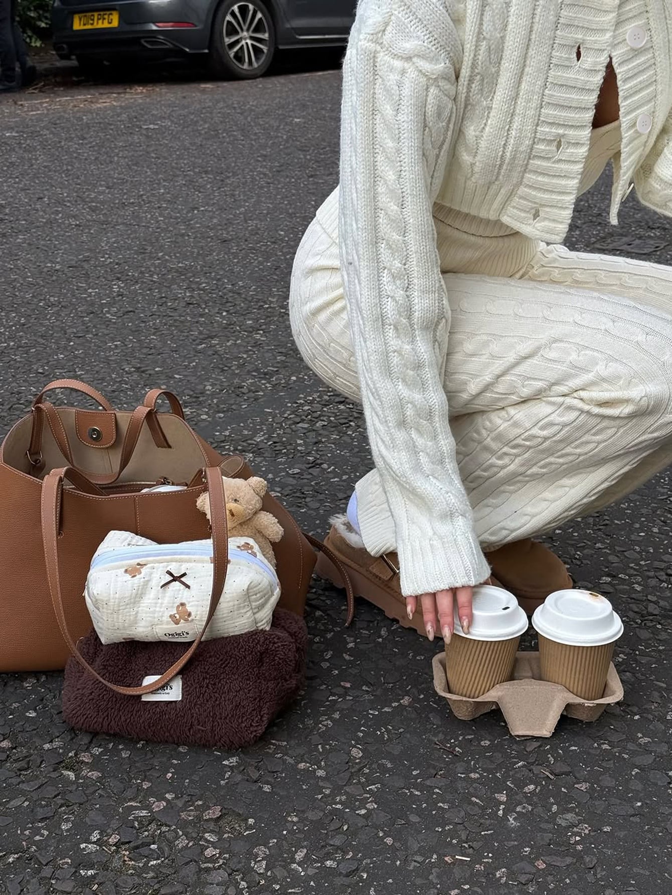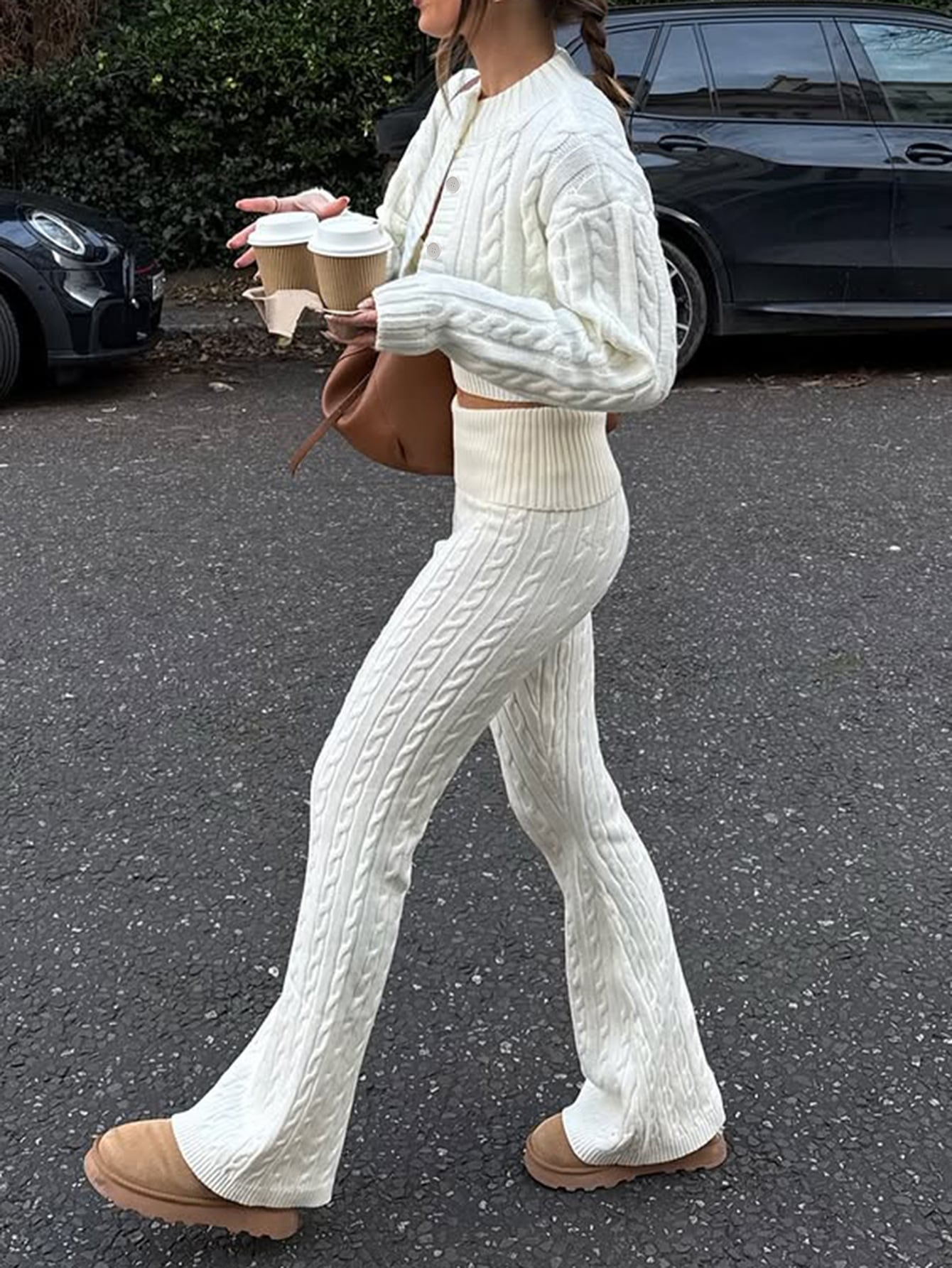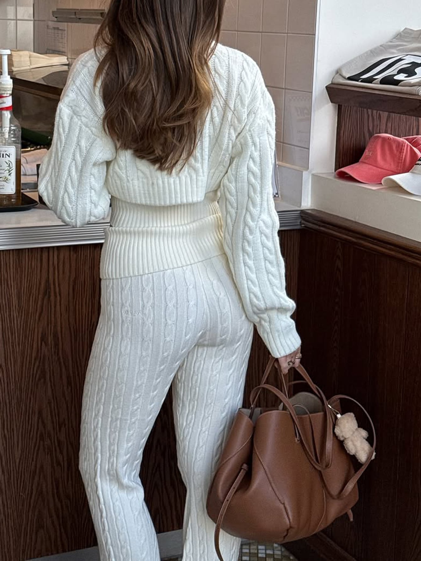 ハイウエストケーブル風ワイドパンツ|ルーズストレート|厚手|ホワイト(秋冬)