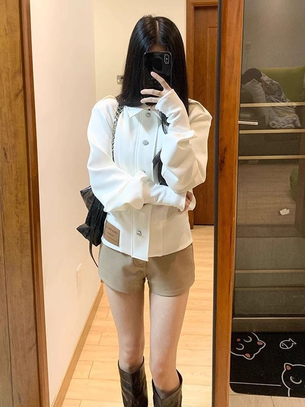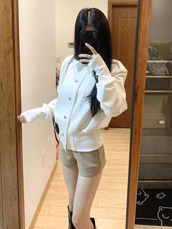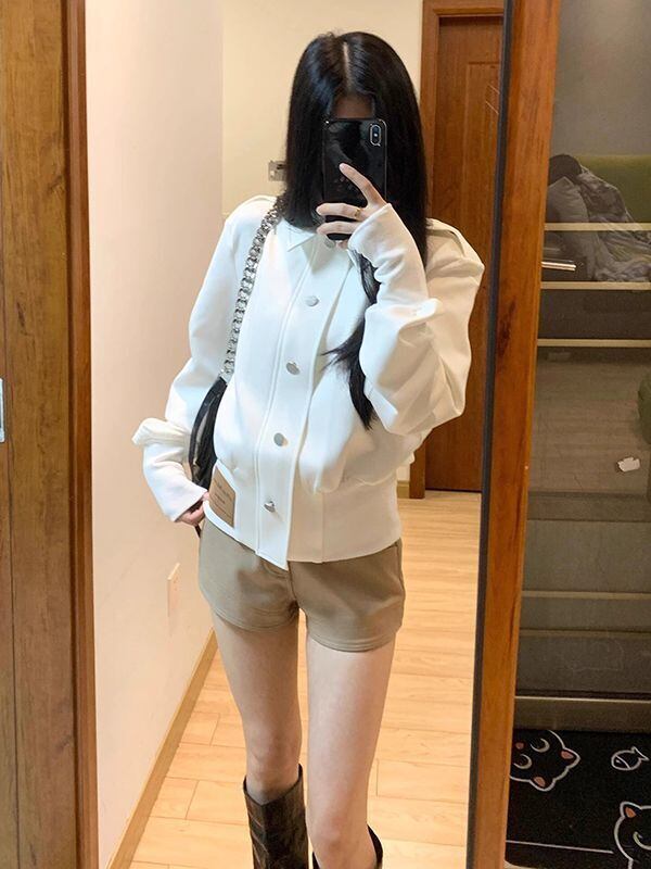 洗練されたアメリカンテイスト ショート丈 ホワイトジャケット 春秋ライトアウター(レディース)