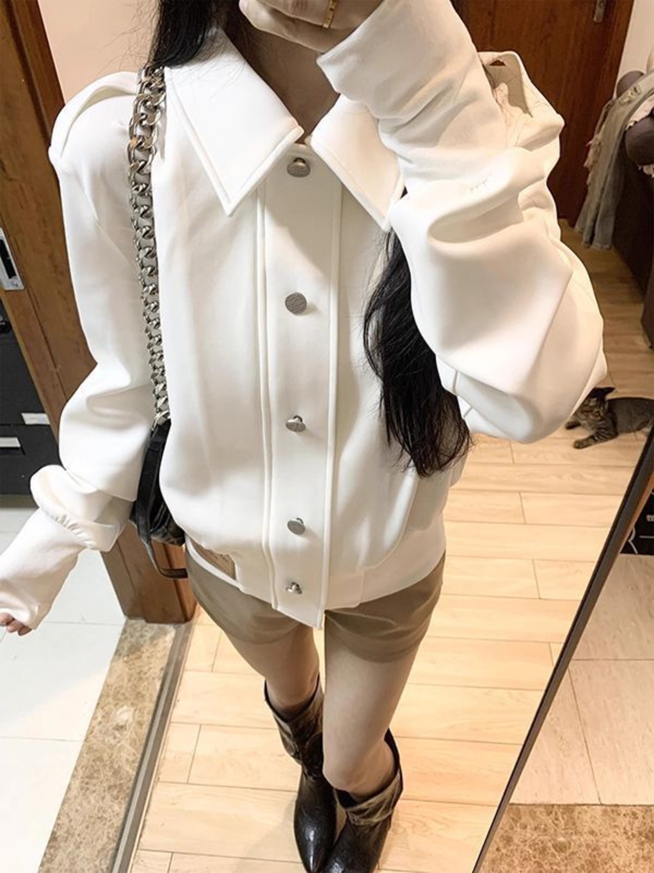 日常使いはもちろん、通勤やお出かけにも自然に馴染むライトアウターです。