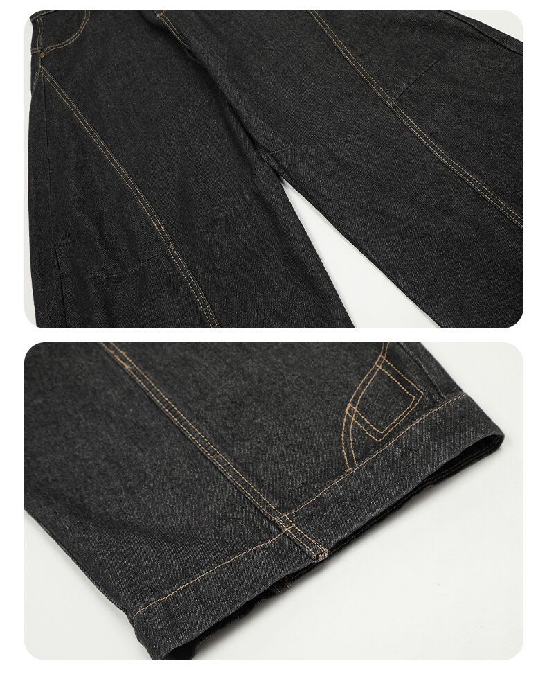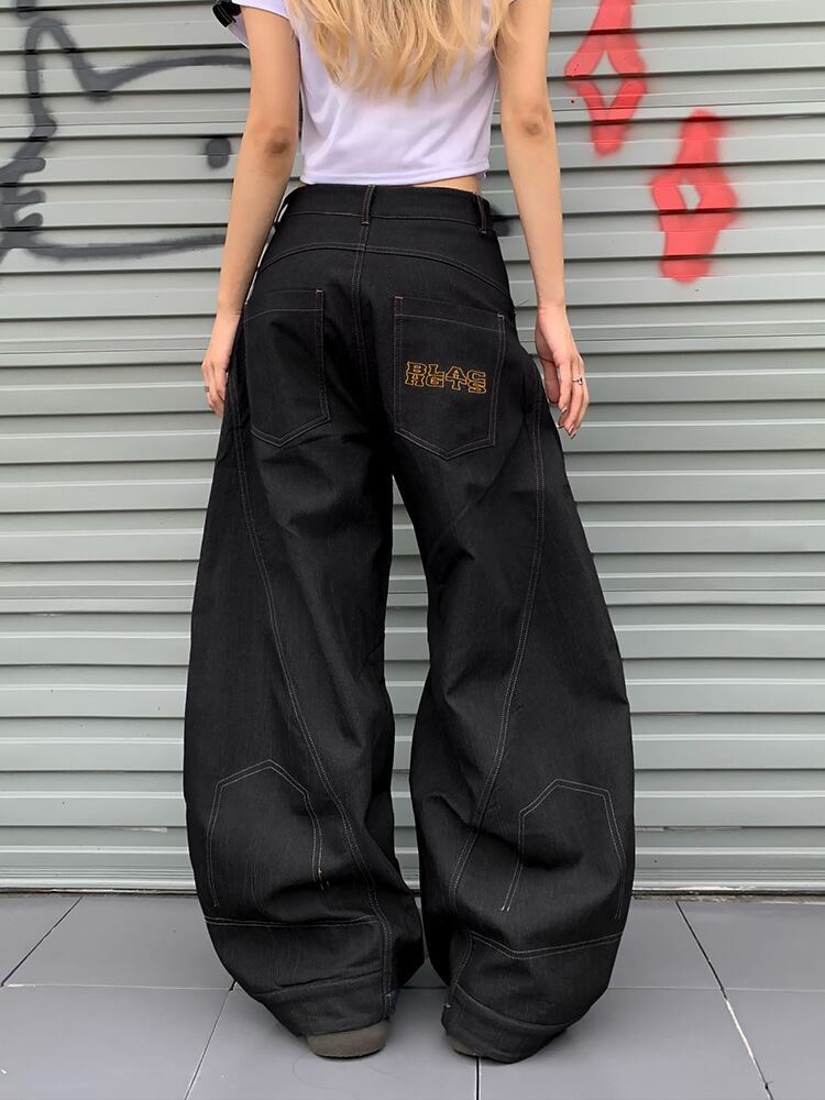 【ブラック】ヴィンテージライク ワイドデニムパンツ ハイウエスト風 ルーズシルエット ユニセックス