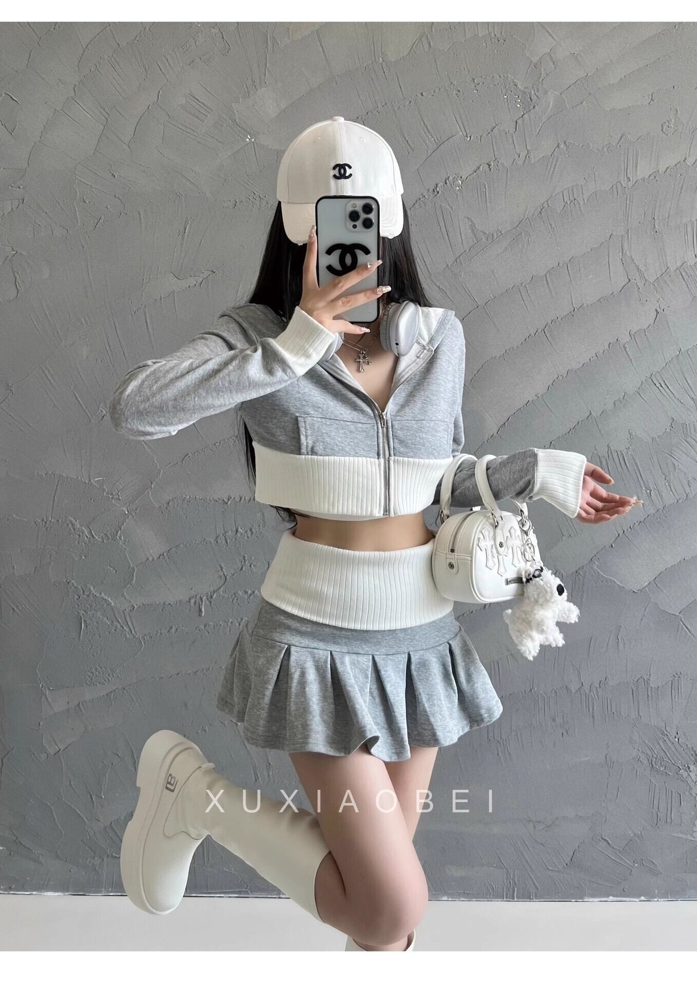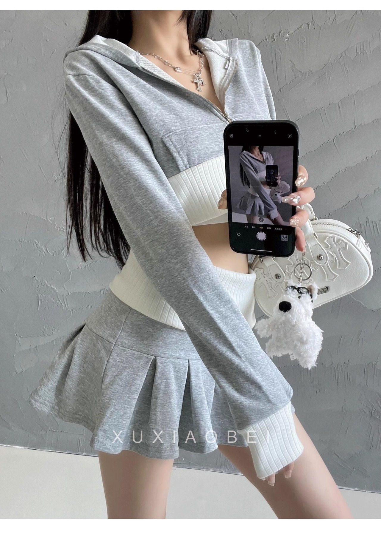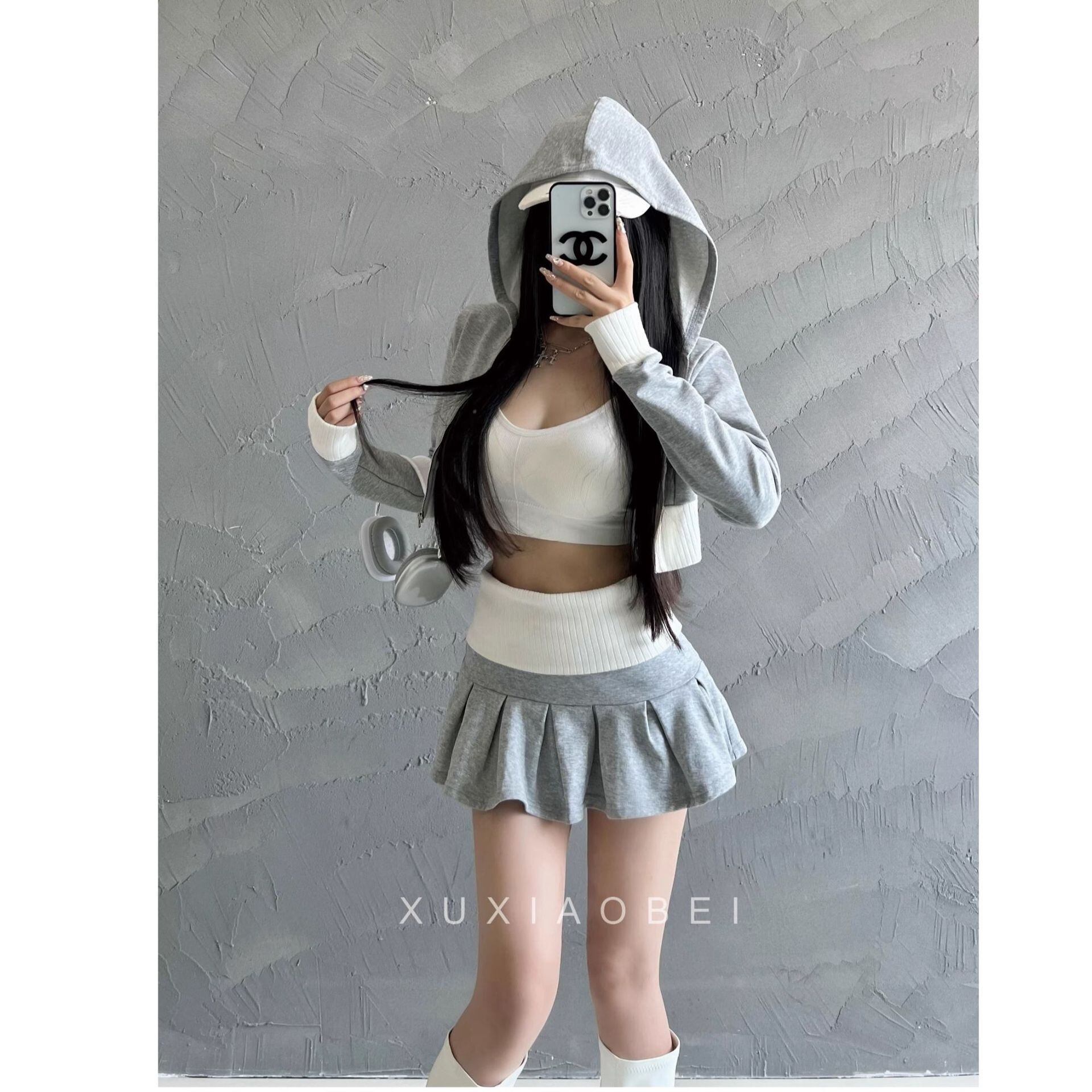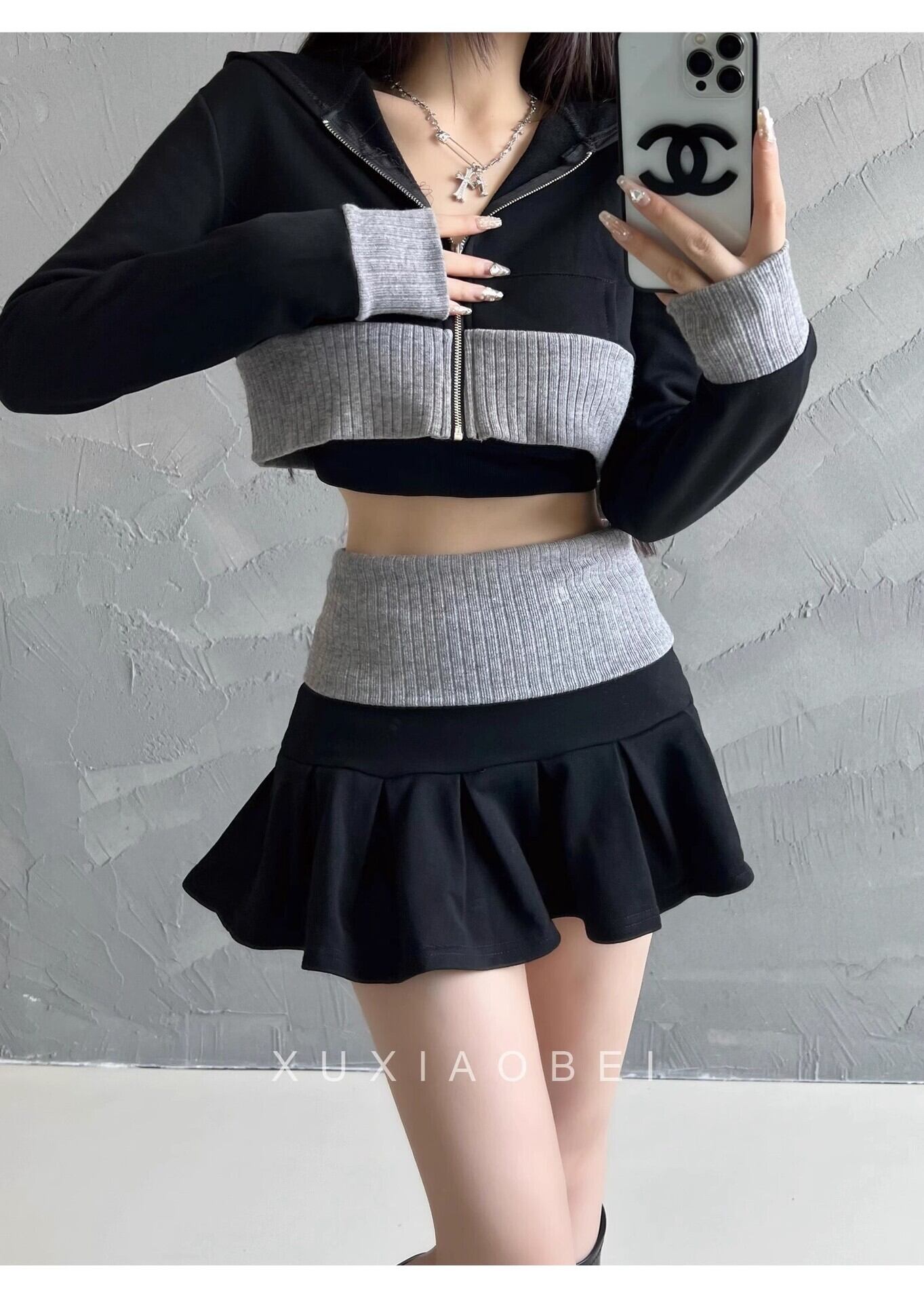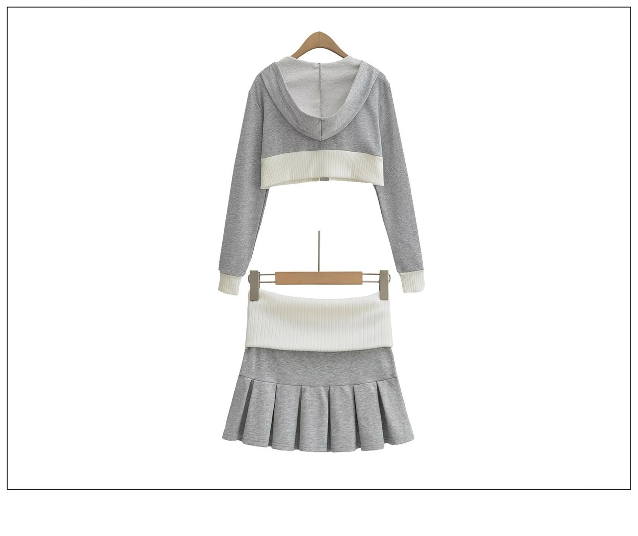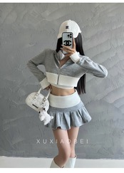 ショート丈トップスとミニスカートの2点セット。