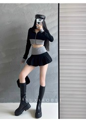 ショート丈トップスとミニスカートの2点セット。