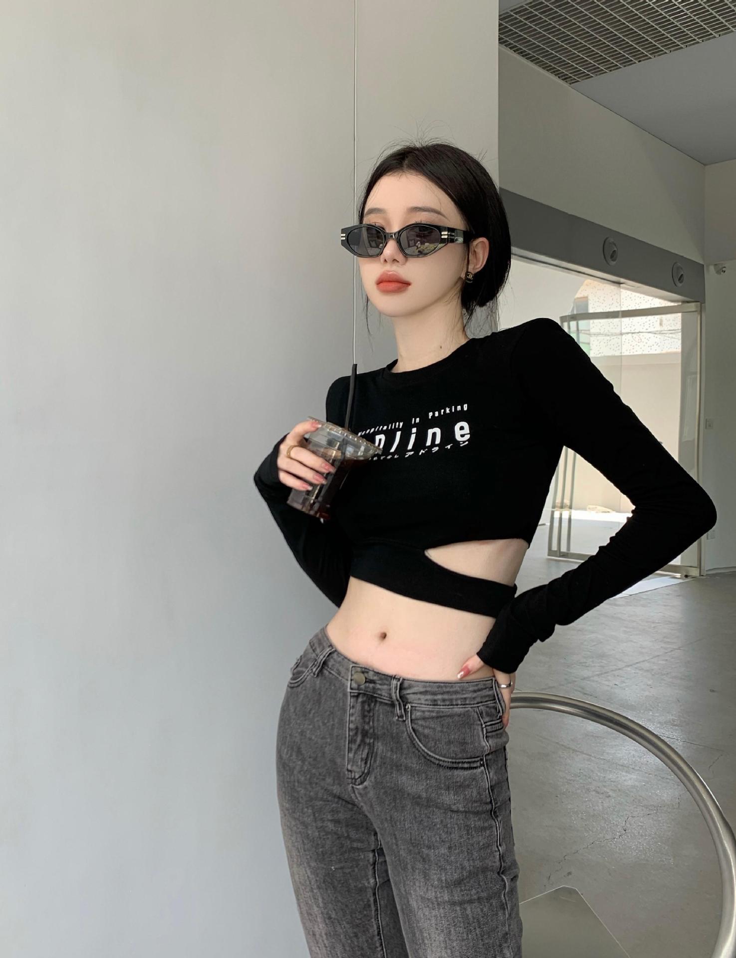 ショート丈×タイトシルエットの長袖Tシャツ。