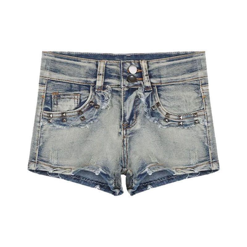 【春夏新作】ローウエスト デニムショートパンツ|ヴィンテージブルー|美脚・ヒップライン強調|American Girl/ギャルストリート