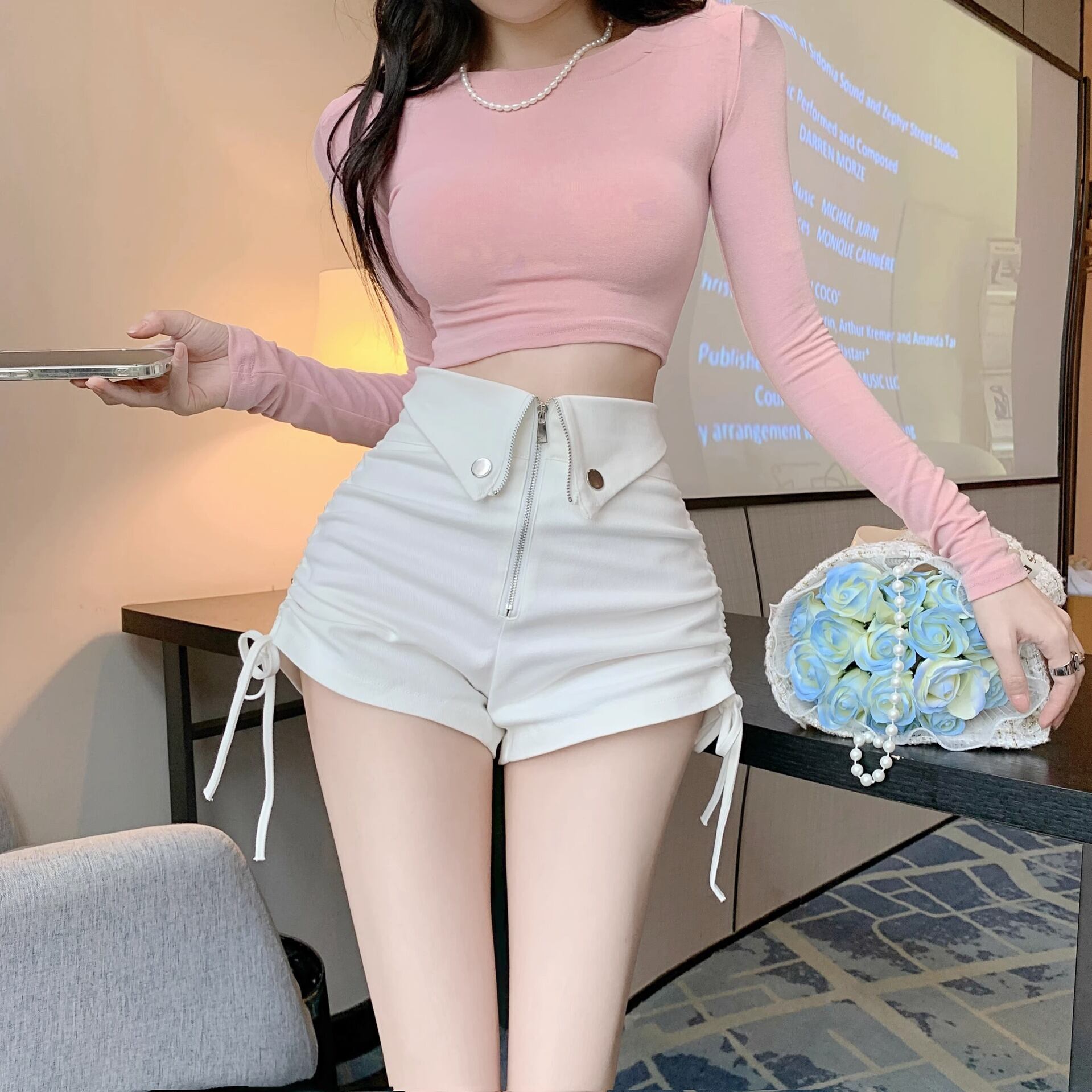 ・ショート丈トップスでY2K風