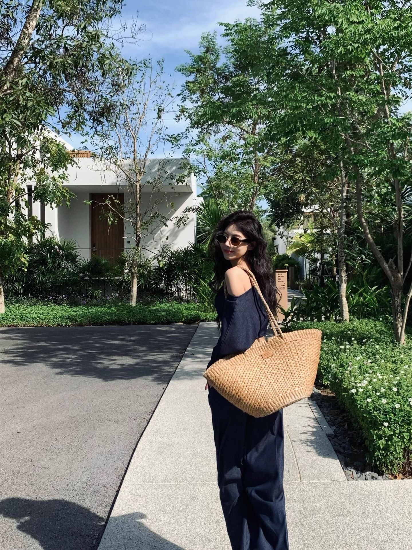ボトムスはハイウエスト仕様のワイドパンツ。