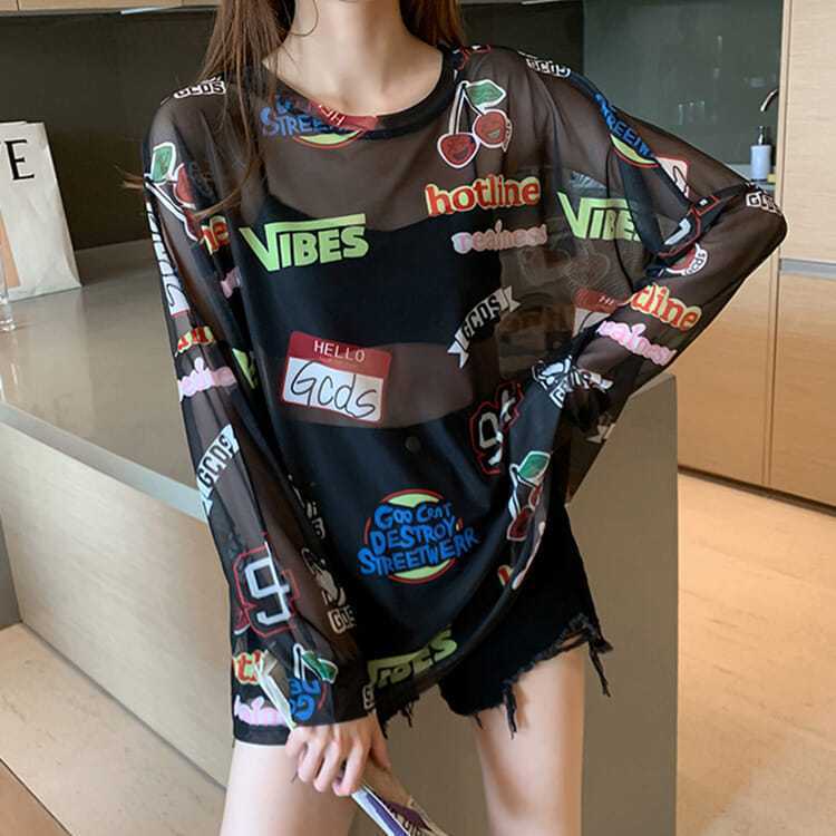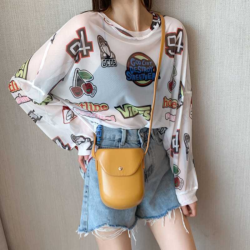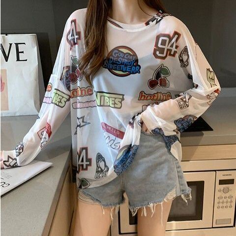 POPなデザインの薄手シアートップス。