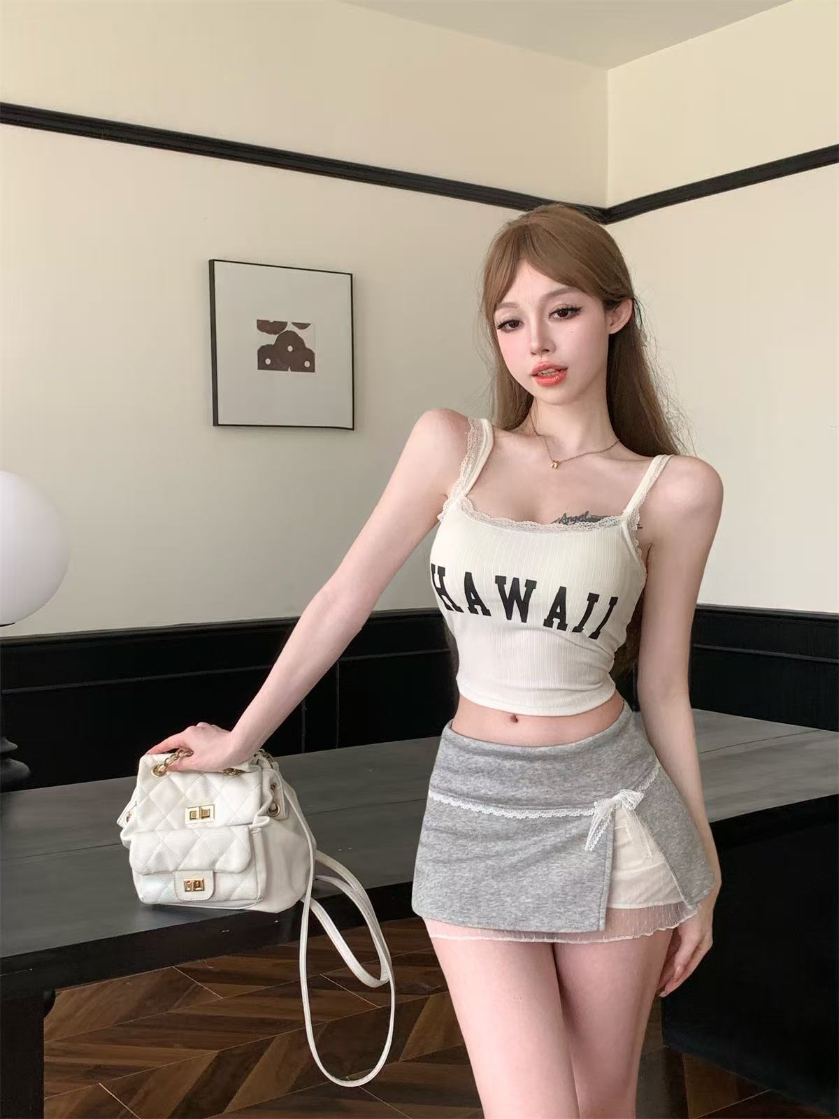 ・クロップドトップスで王道ガーリー