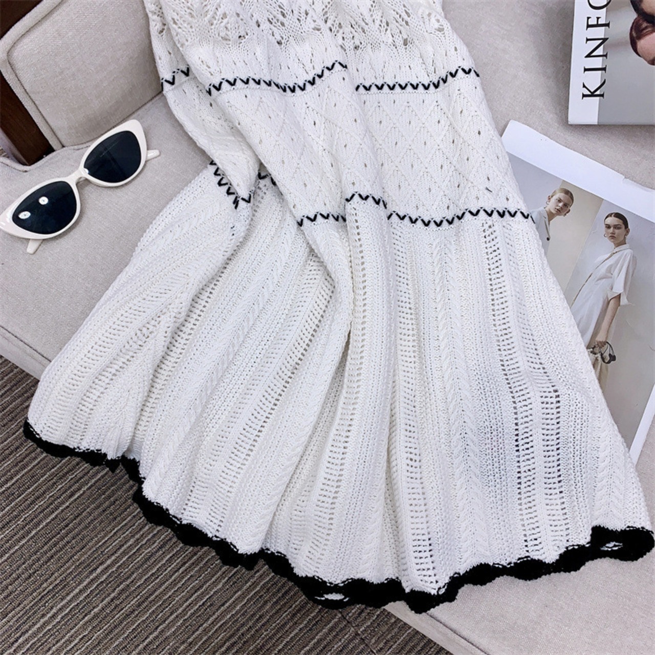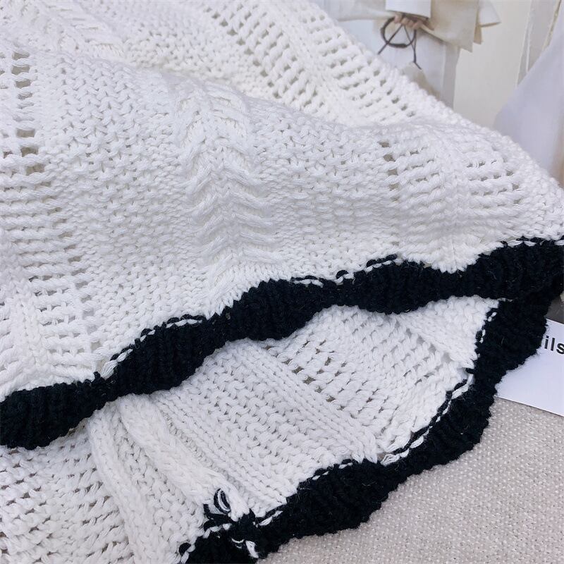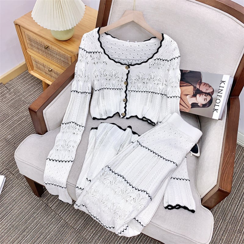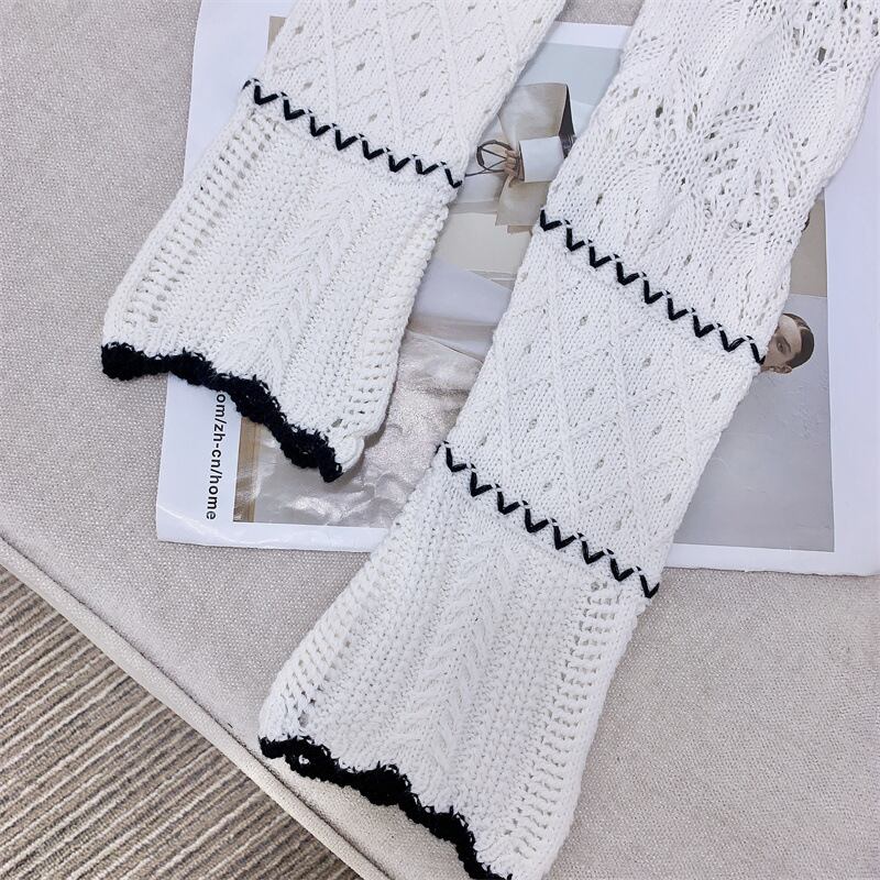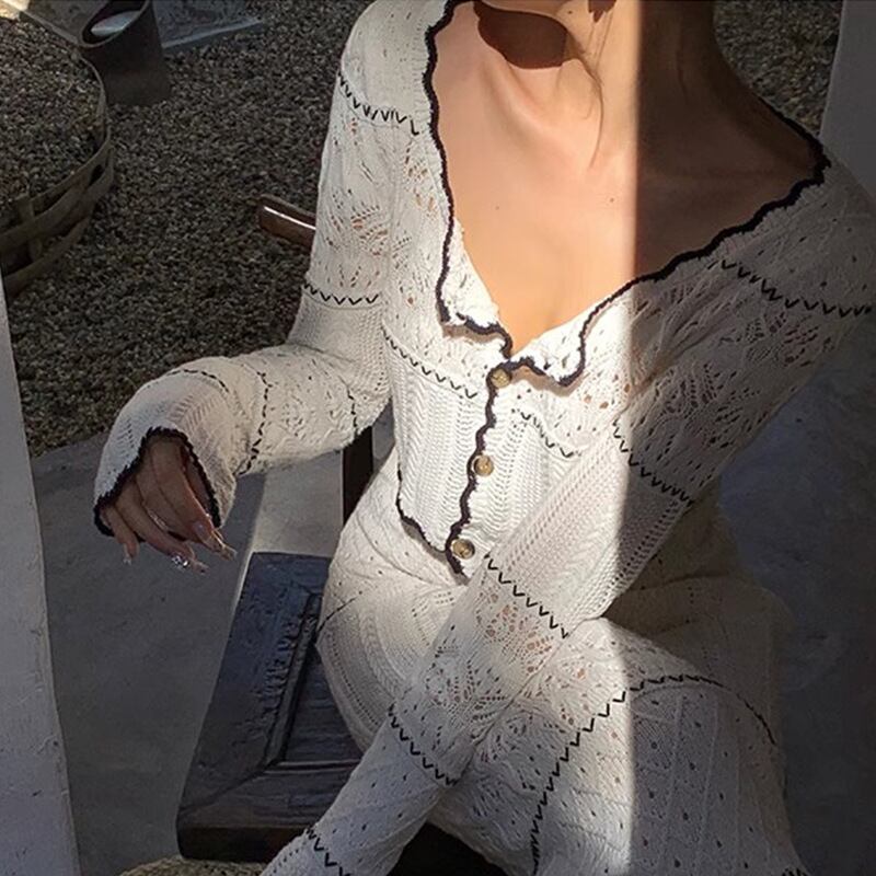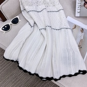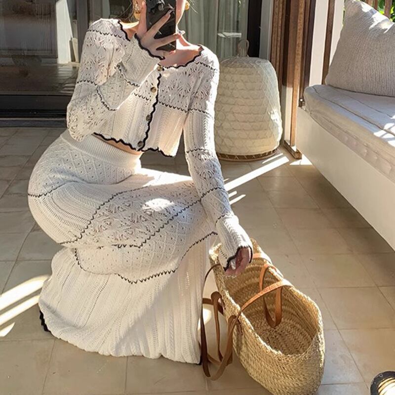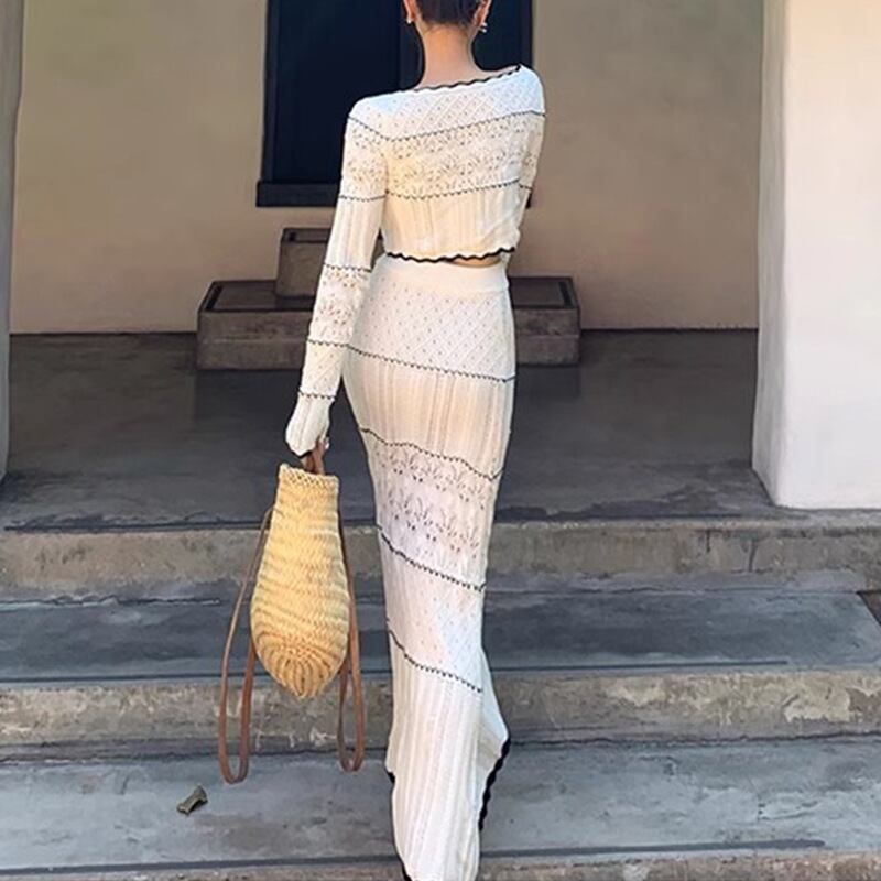 配色デザイン ニットトップス×ロングスカート セットアップ 春秋対応 上品カジュアル