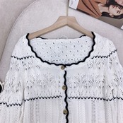 手編み風の編み柄と配色デザインが程よいアクセントとなり、