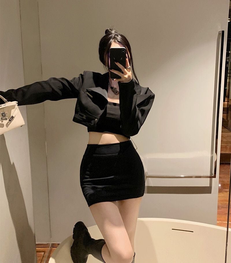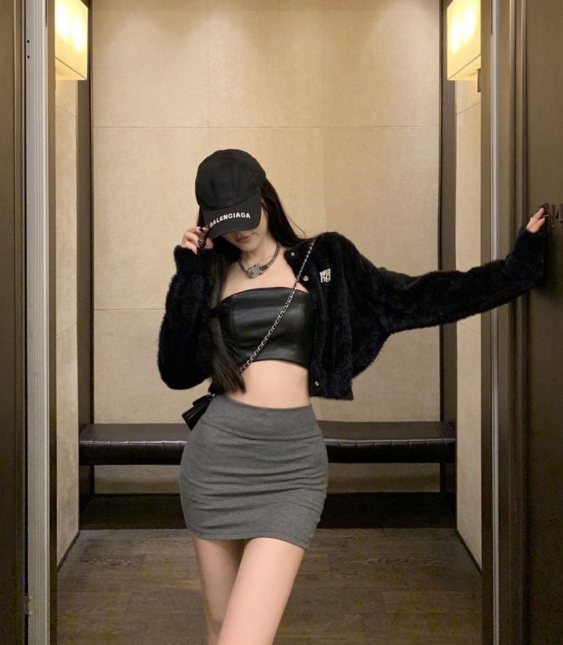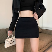 シンプルで洗練された印象のタイトミニスカート。
