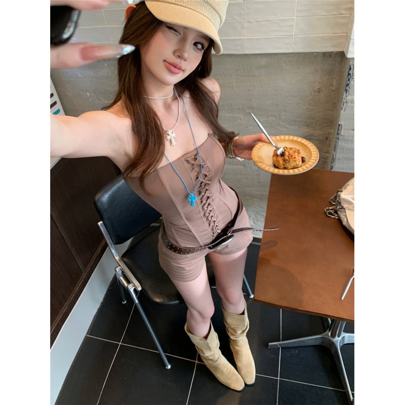 ベアトップ・ショートパンツ・長袖カーディガンの