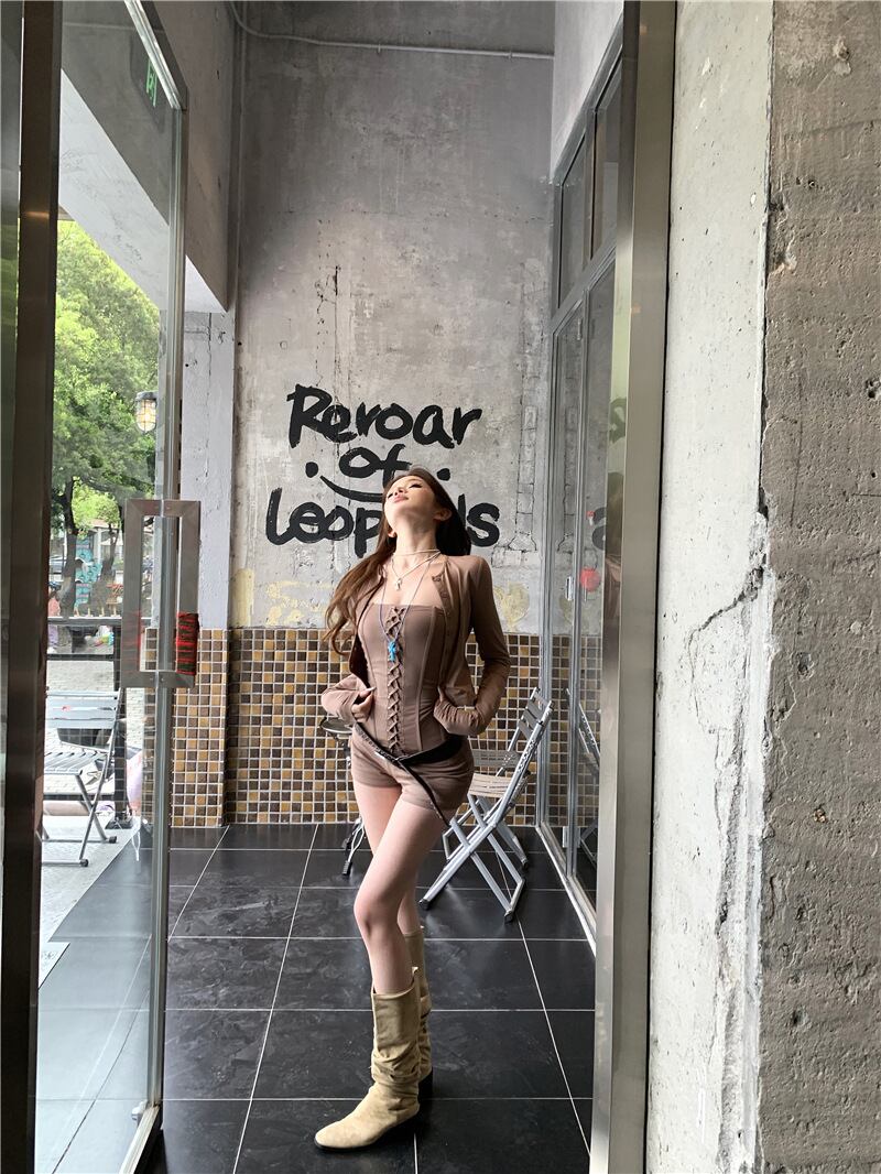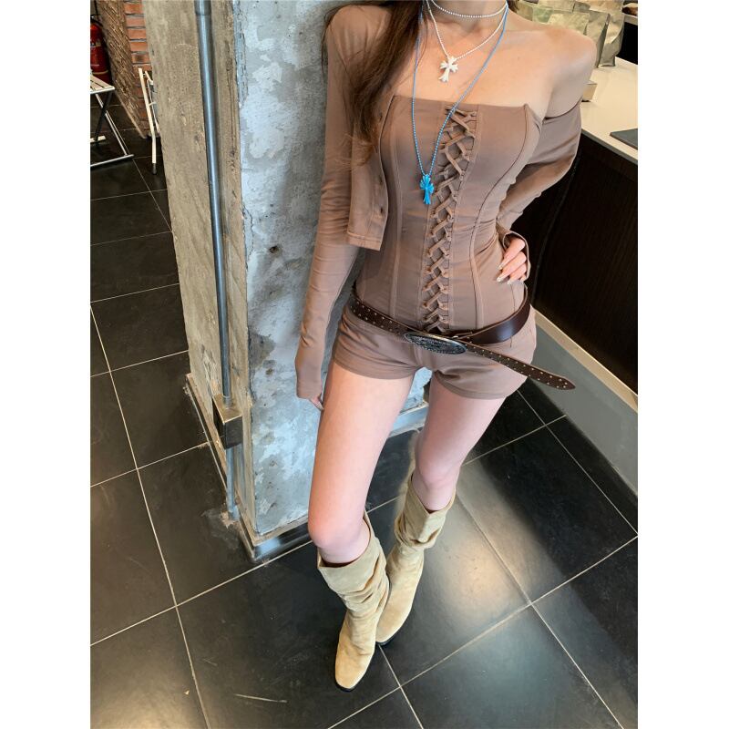 ベアトップ×ショートパンツ×長袖カーディガン 3点セット レディース(春秋)