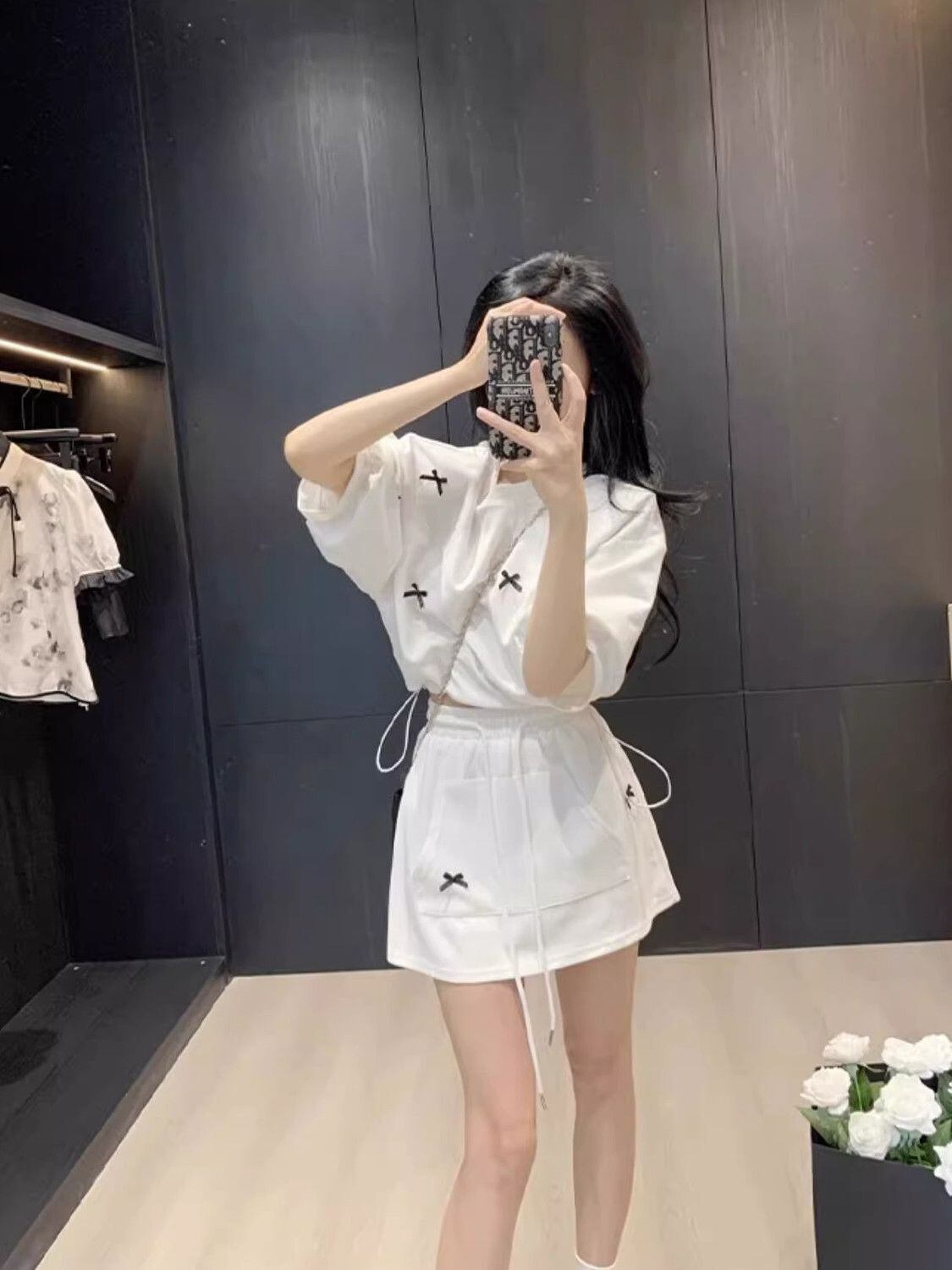 刺繍デザイン入り リラックス半袖トップス×スカート 2点セット 夏向けカジュアルセットアップ