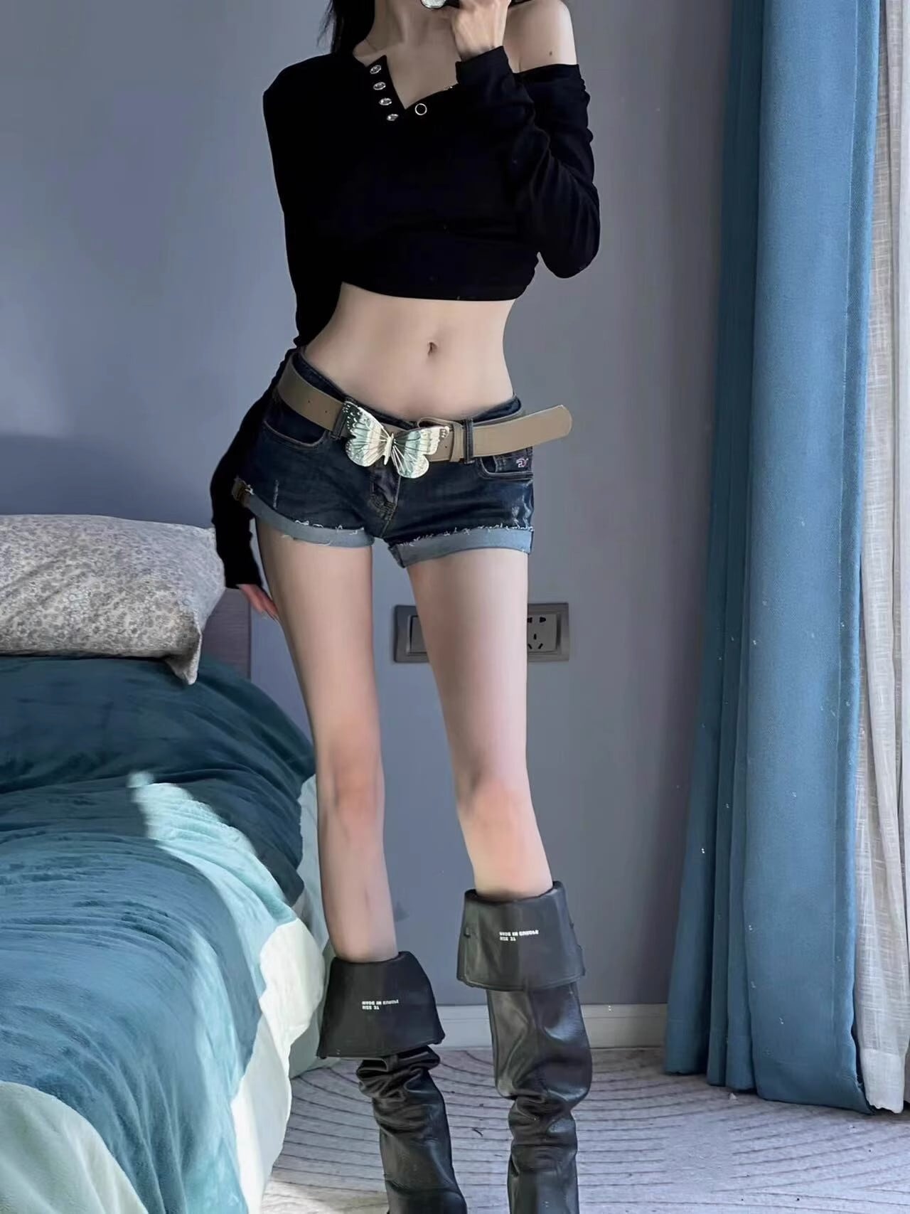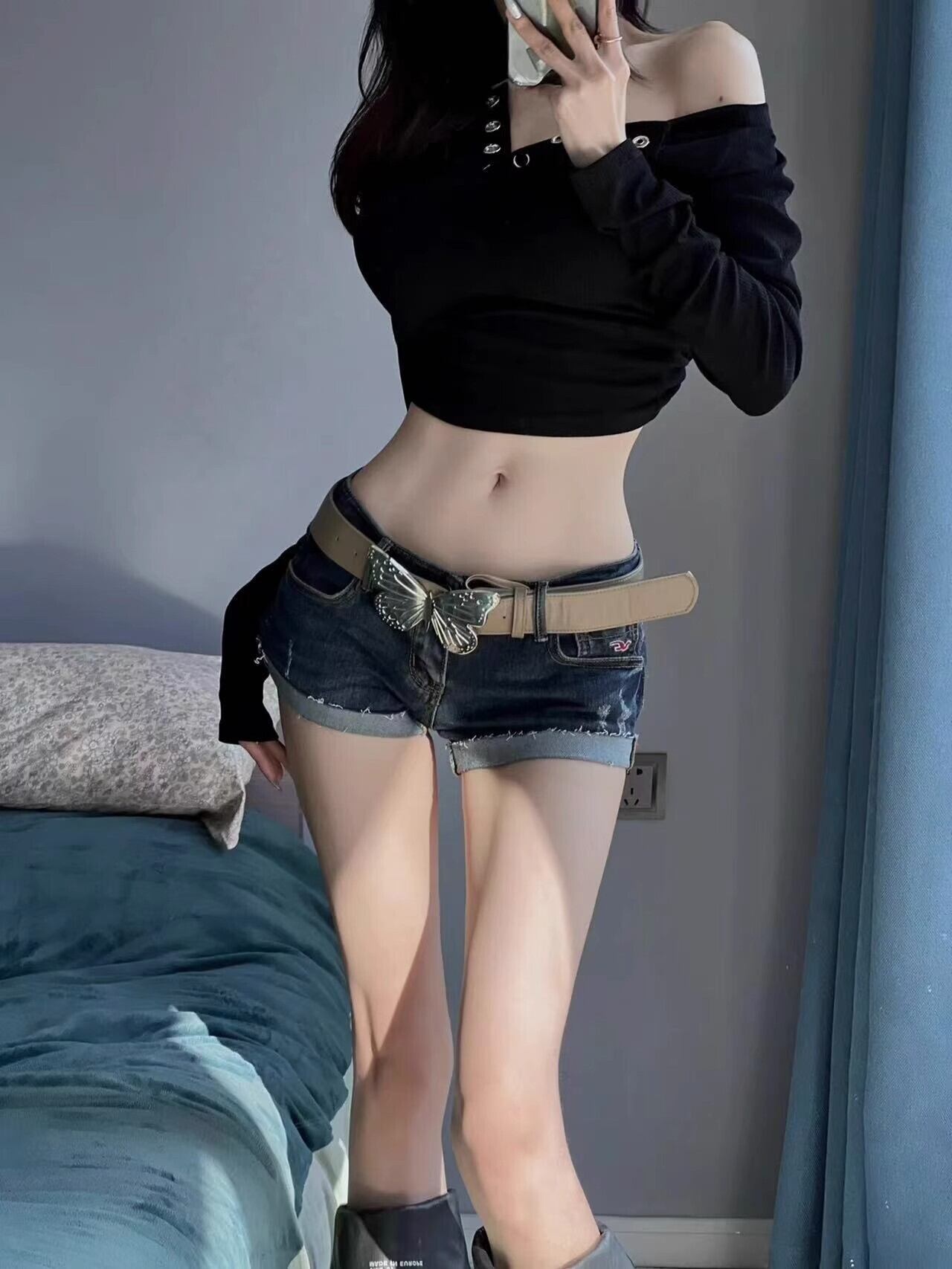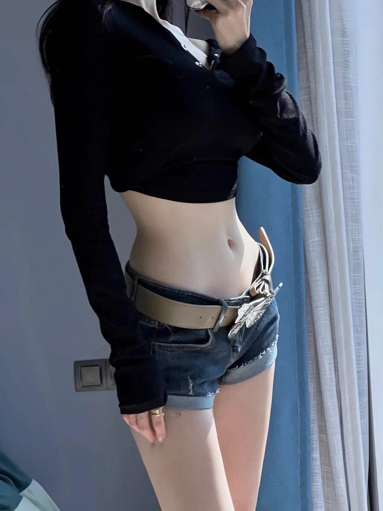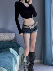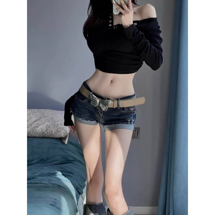 デニムショートパンツ レディース ローウエスト ストレッチ入り コンパクトシルエット 夏向け