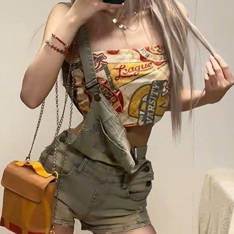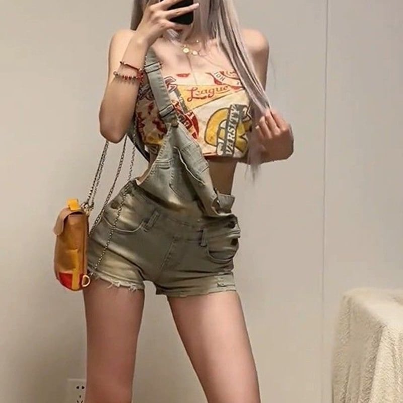ヴィンテージウォッシュ デニムサロペットショートパンツ|夏の高見えカジュアル