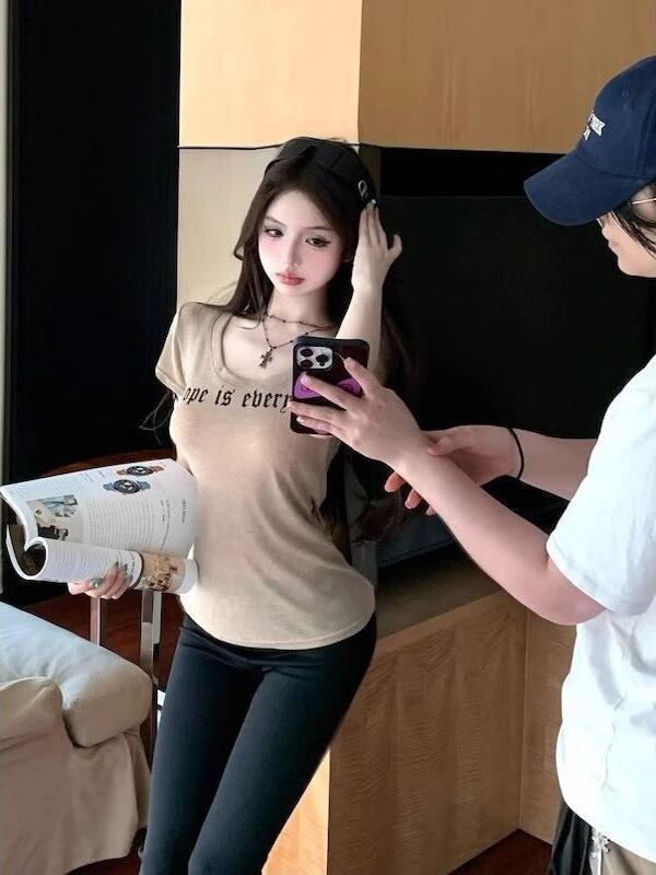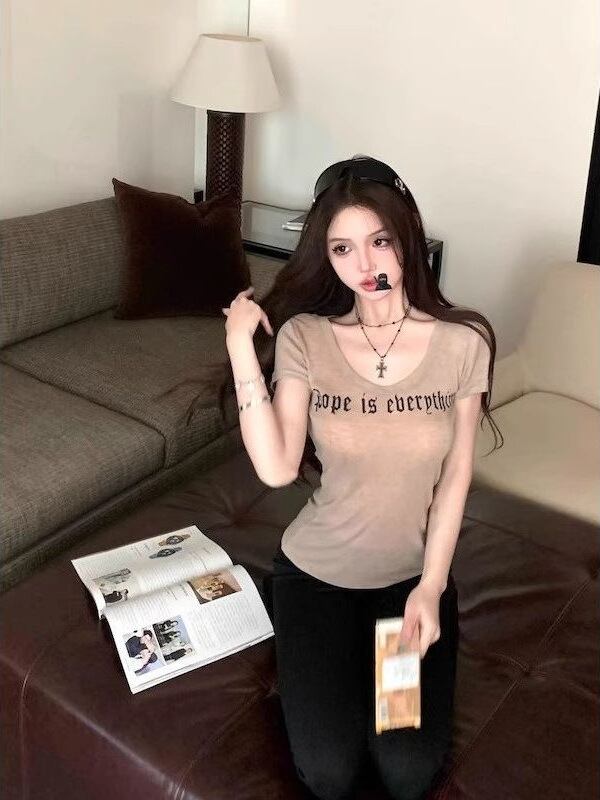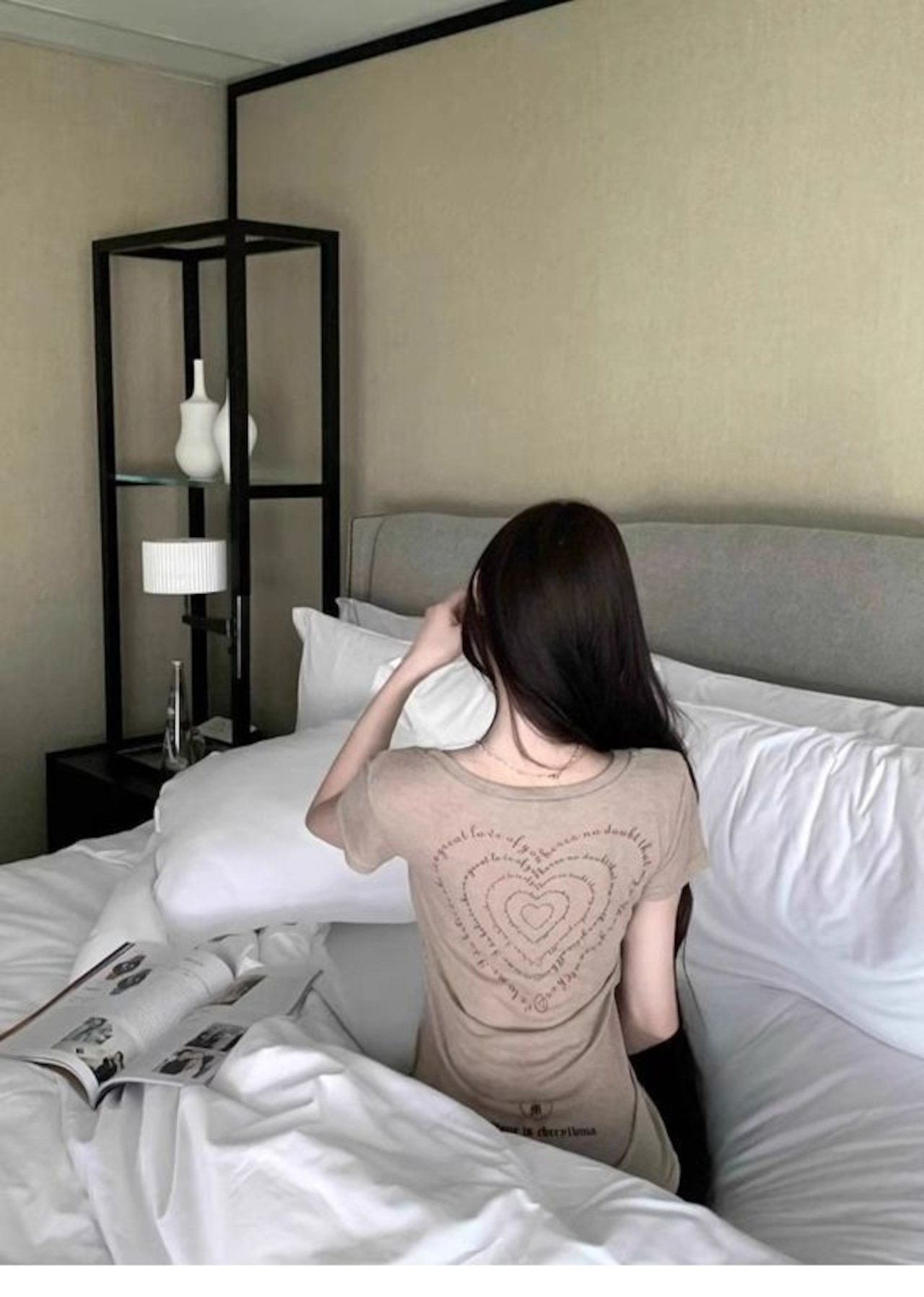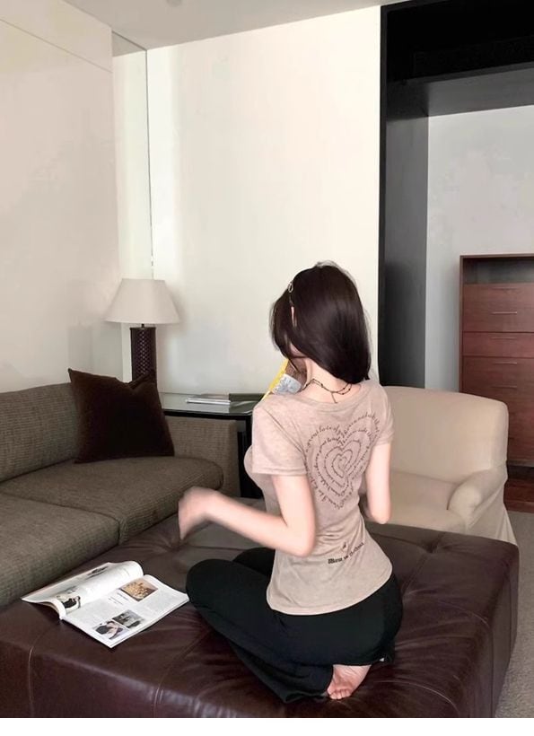 ロゴ×ハートプリント 半袖Tシャツ|ウエストフィット・カーキ
