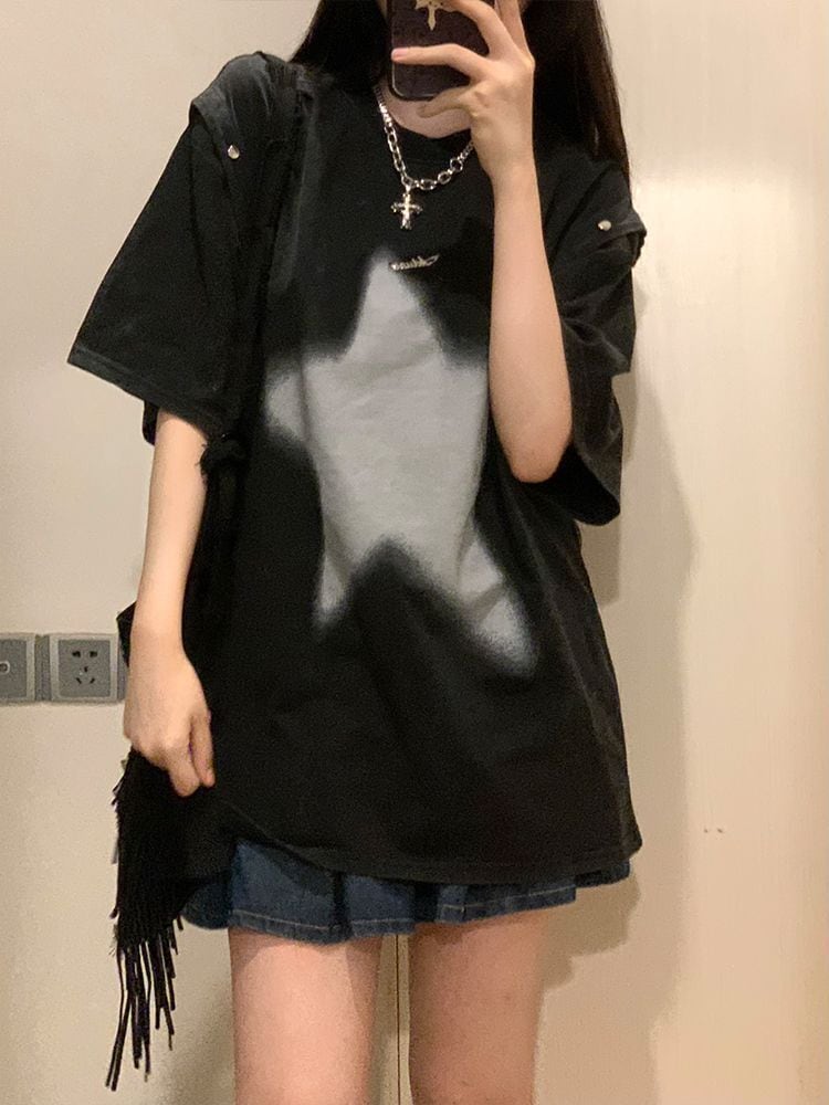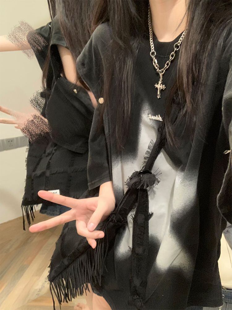 デザイン切り替え 2WAYレイヤードTシャツ|取り外しベスト付き・ルーズフィット